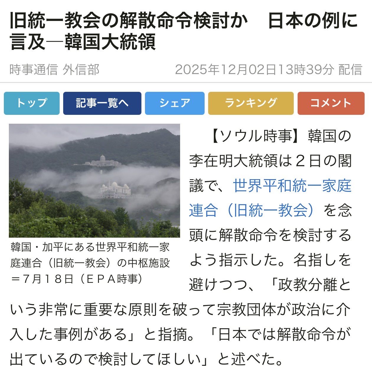 - 山上の弾丸が韓国本部も貫きそう