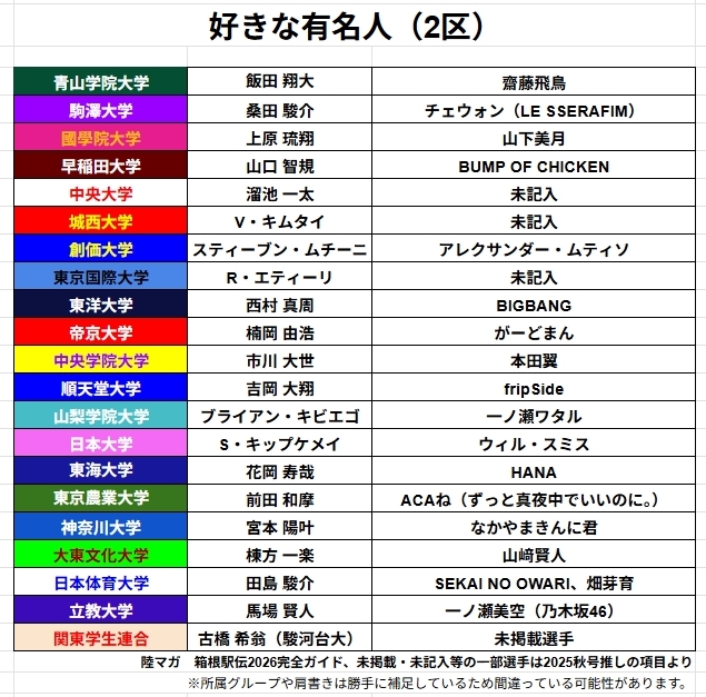 二区走者の好きなタレント -