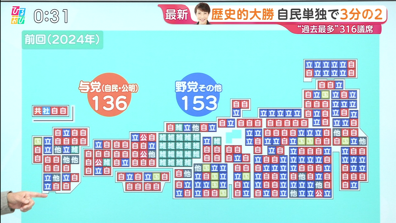 自民 316(118増)無所属 4( 6減)