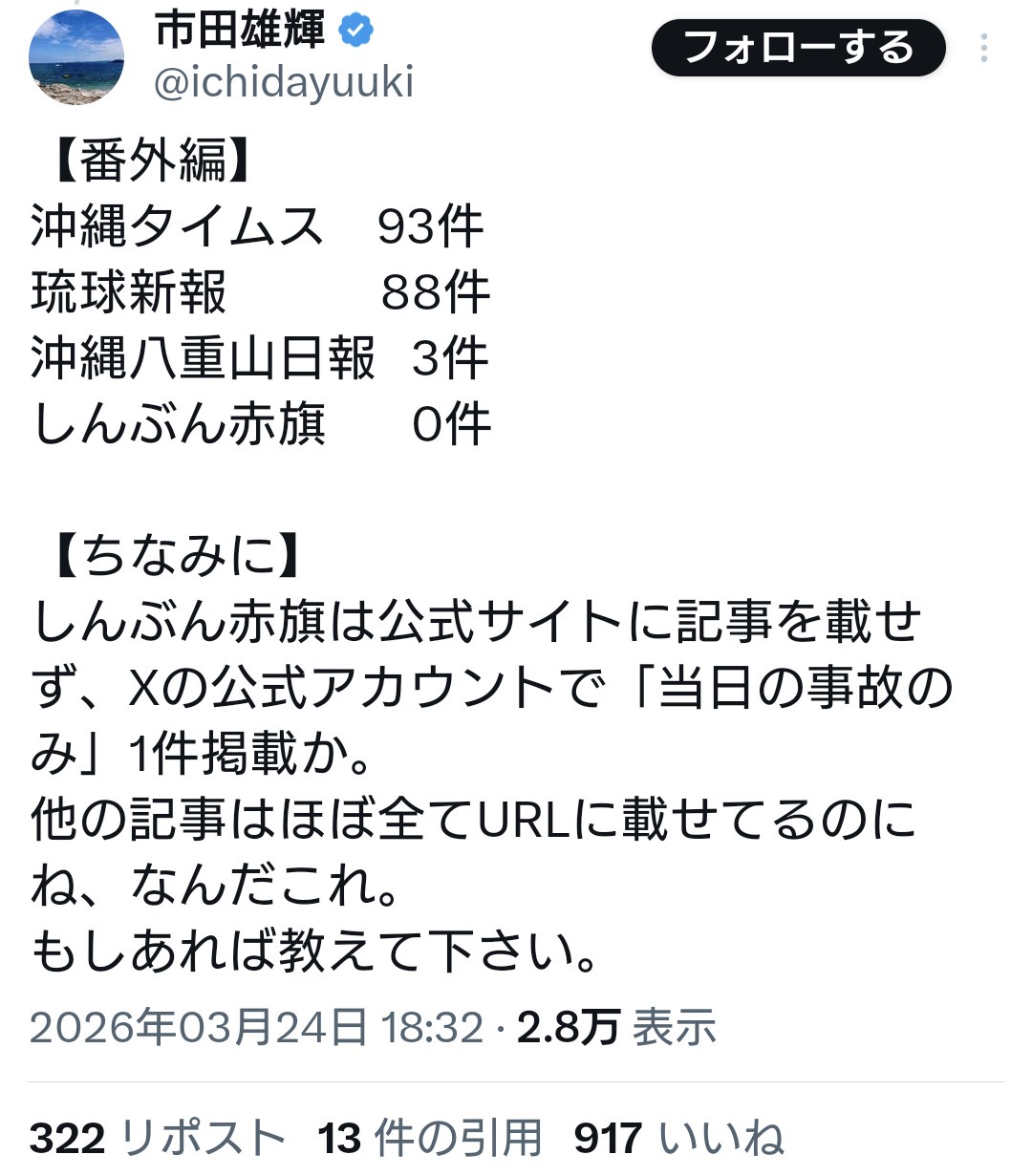 - 【マスゴミ悲報】辺野古死亡事故、朝日・東京などリベラル系紙が全く報じず「記事が産経の1/3もない」