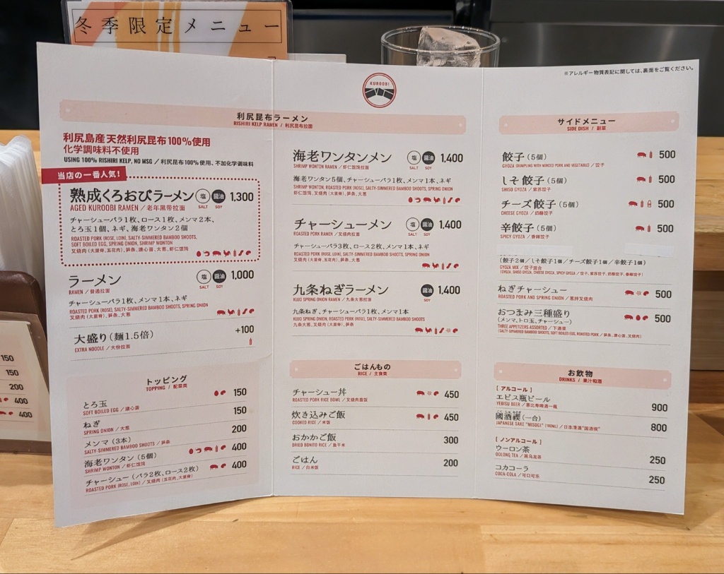 - とあるラーメン屋のメニューとその価格