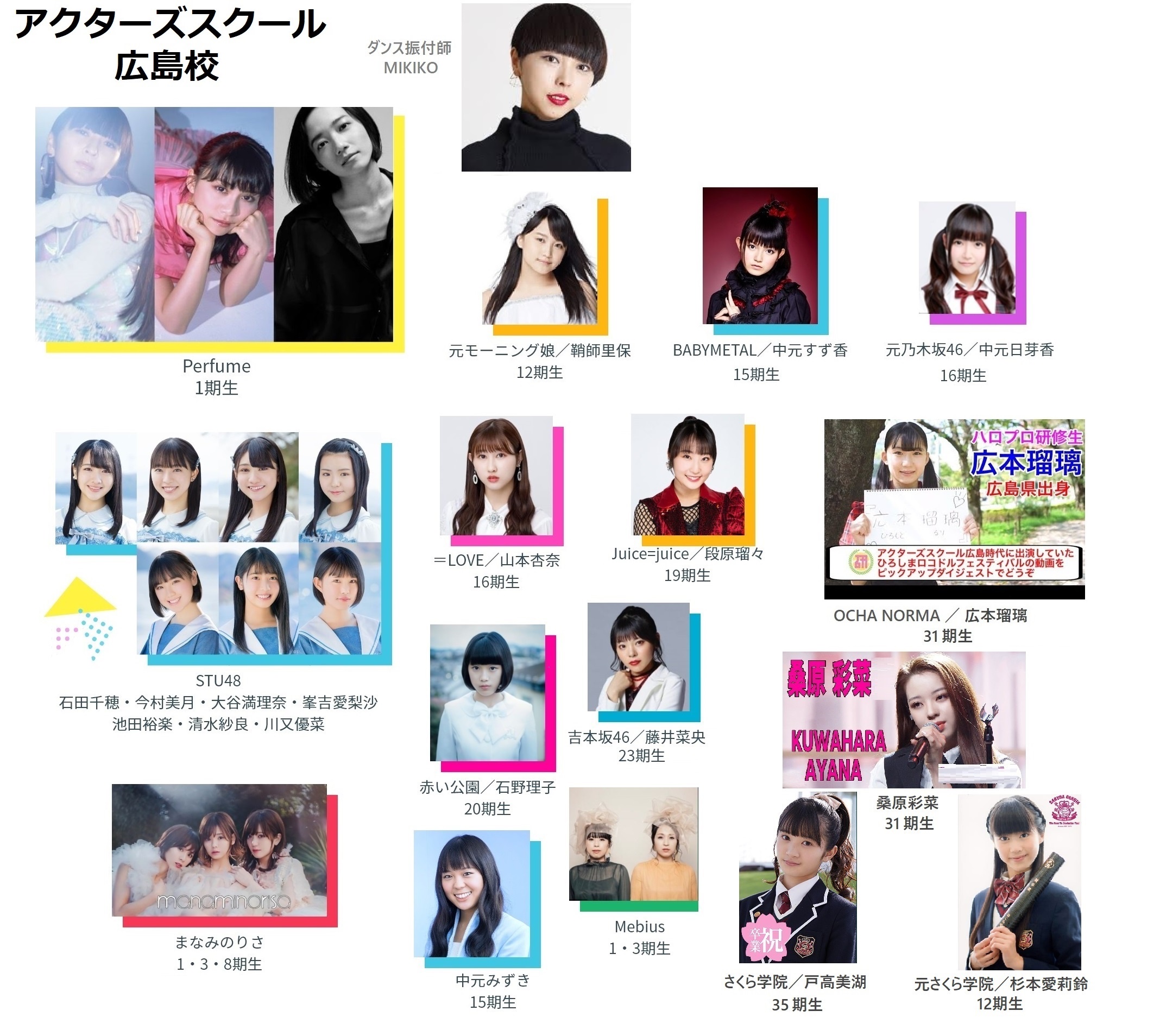 - 段原リーダーはアクターズスクール広島校の出身です。Perfumeなど