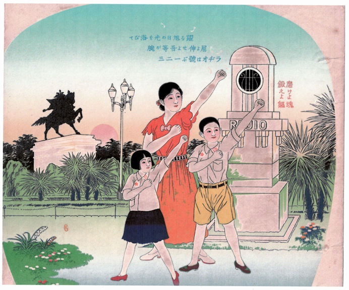 ラジオ塔を描いたうちわ絵 1937(昭和12)年頃 (個人蔵)