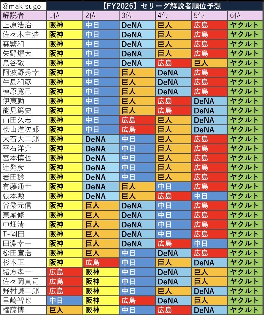中日優勝予想しといてヤクルト最下位は鉄板w