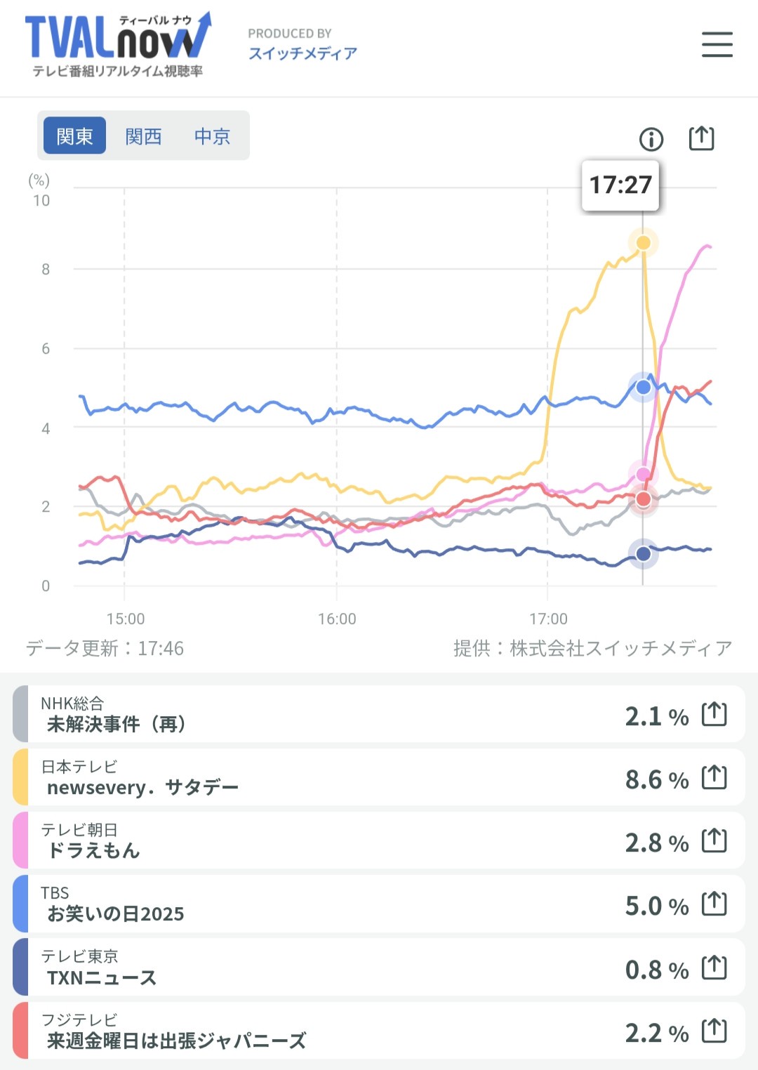- ニュースの時間はニュース被りしてるのに数字上がってる