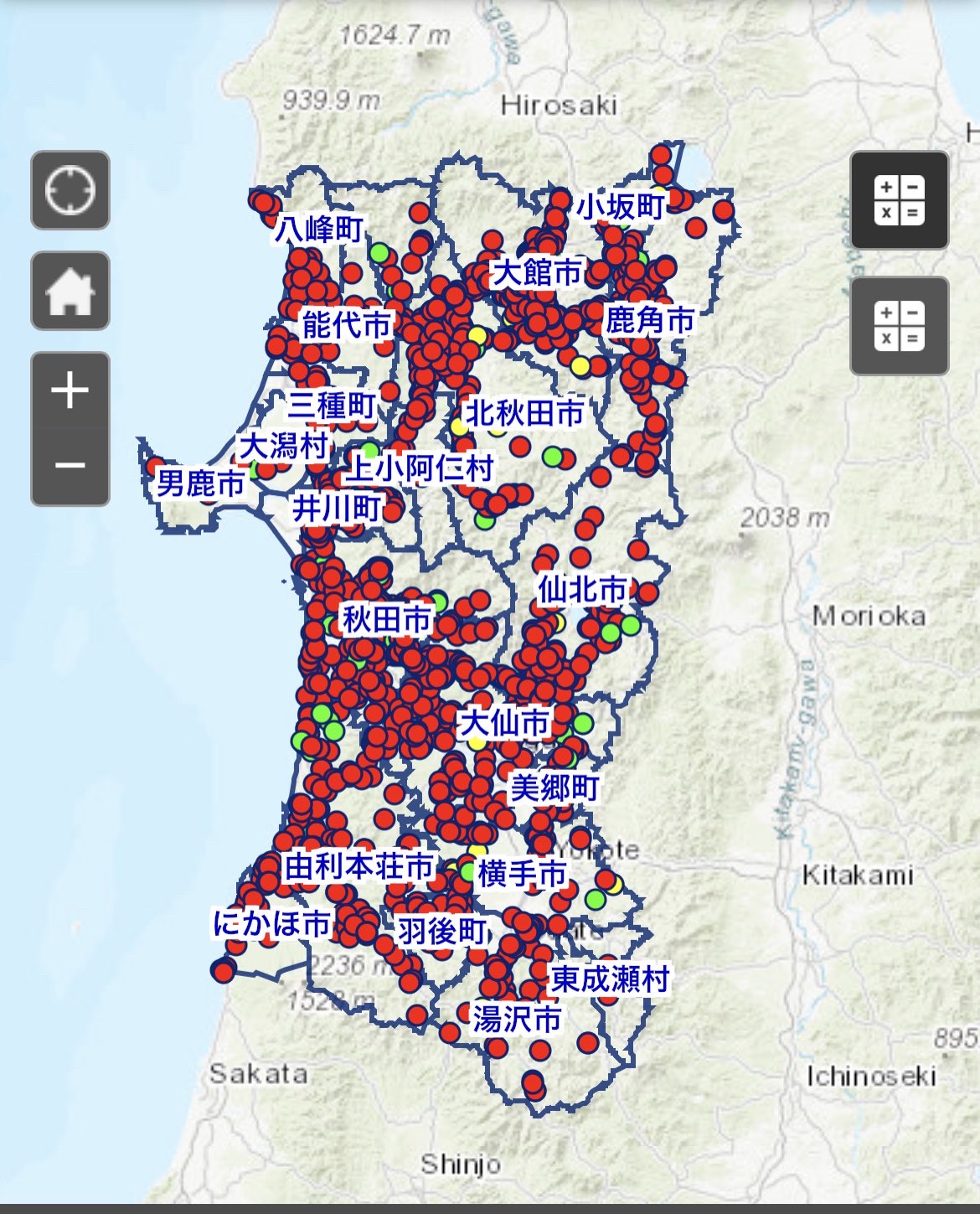 秋田のクマ出没箇所