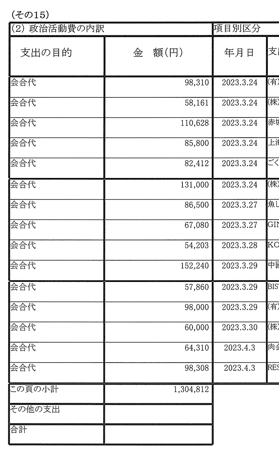 - 野党の政治と金問題は?