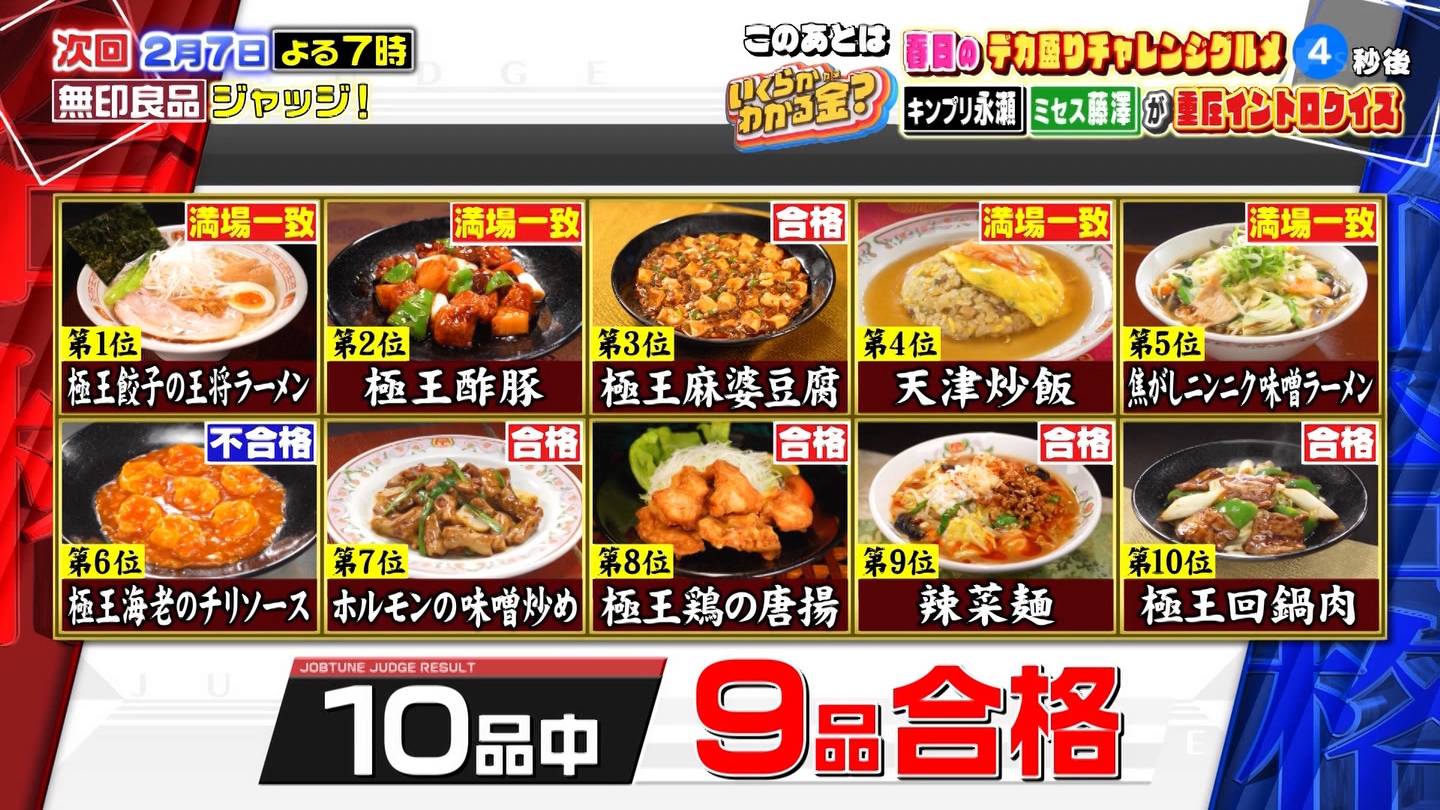 ジョブチューン★餃子の王将×超一流料理人!中華初…全品合格の悲願達成なるか!?★4 (390)