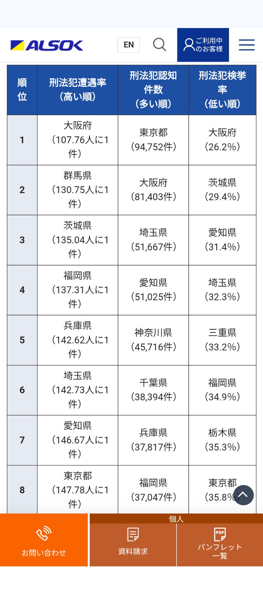 2024年都道府県別犯罪遭遇率、認知件数ランキング