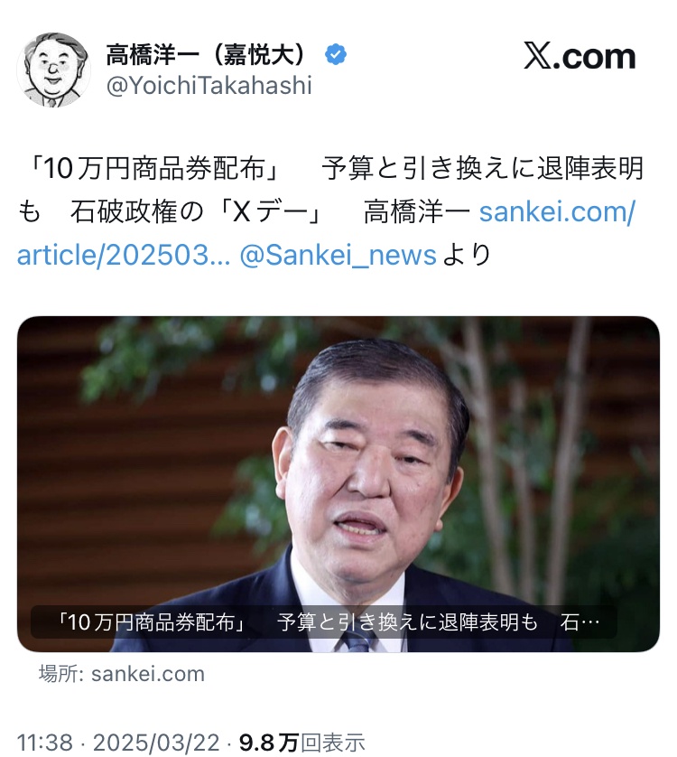 - 【悲報】高市総理のブレーン「これはもう退陣不可避」