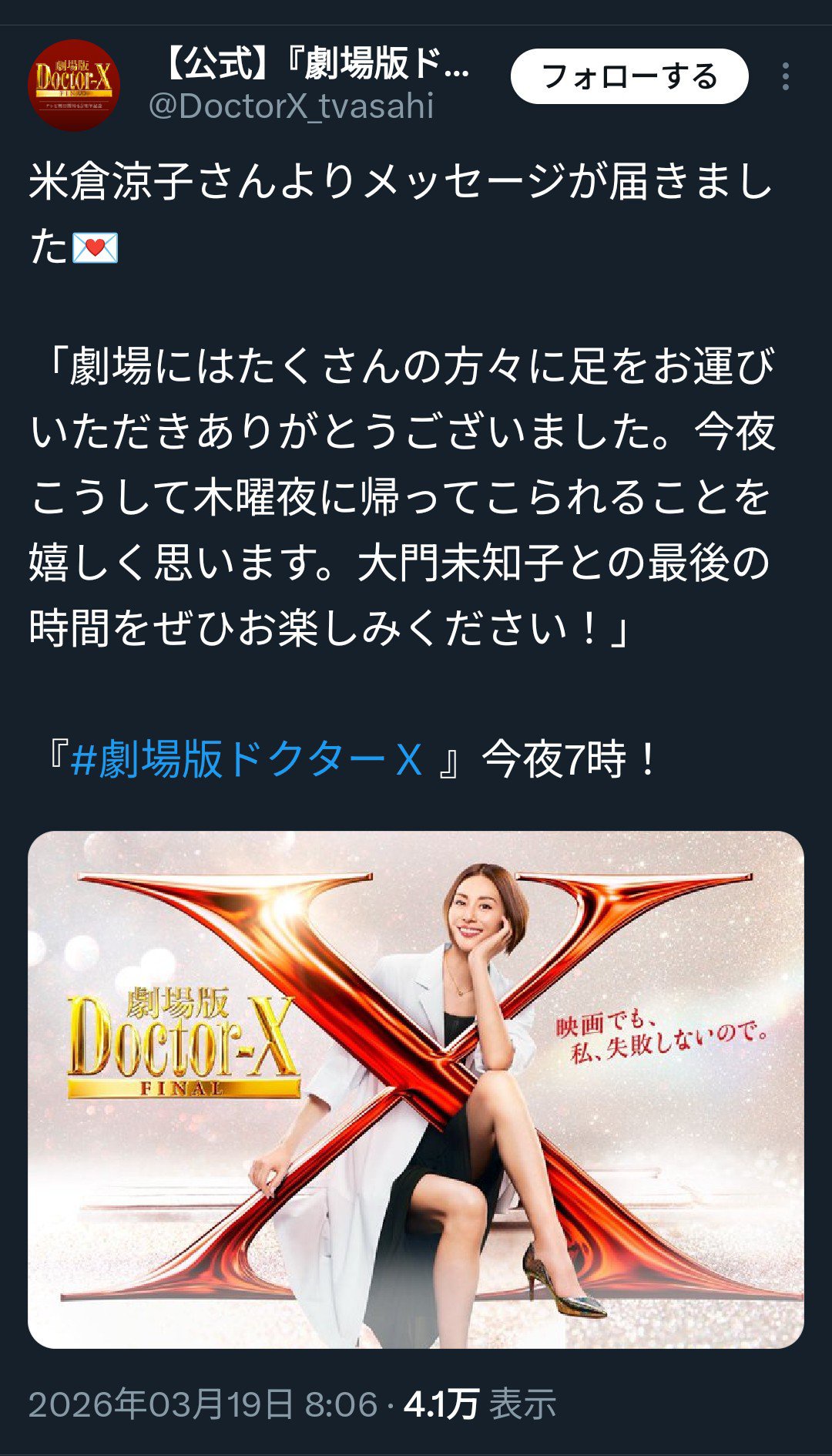 今日ドクターXやるの?