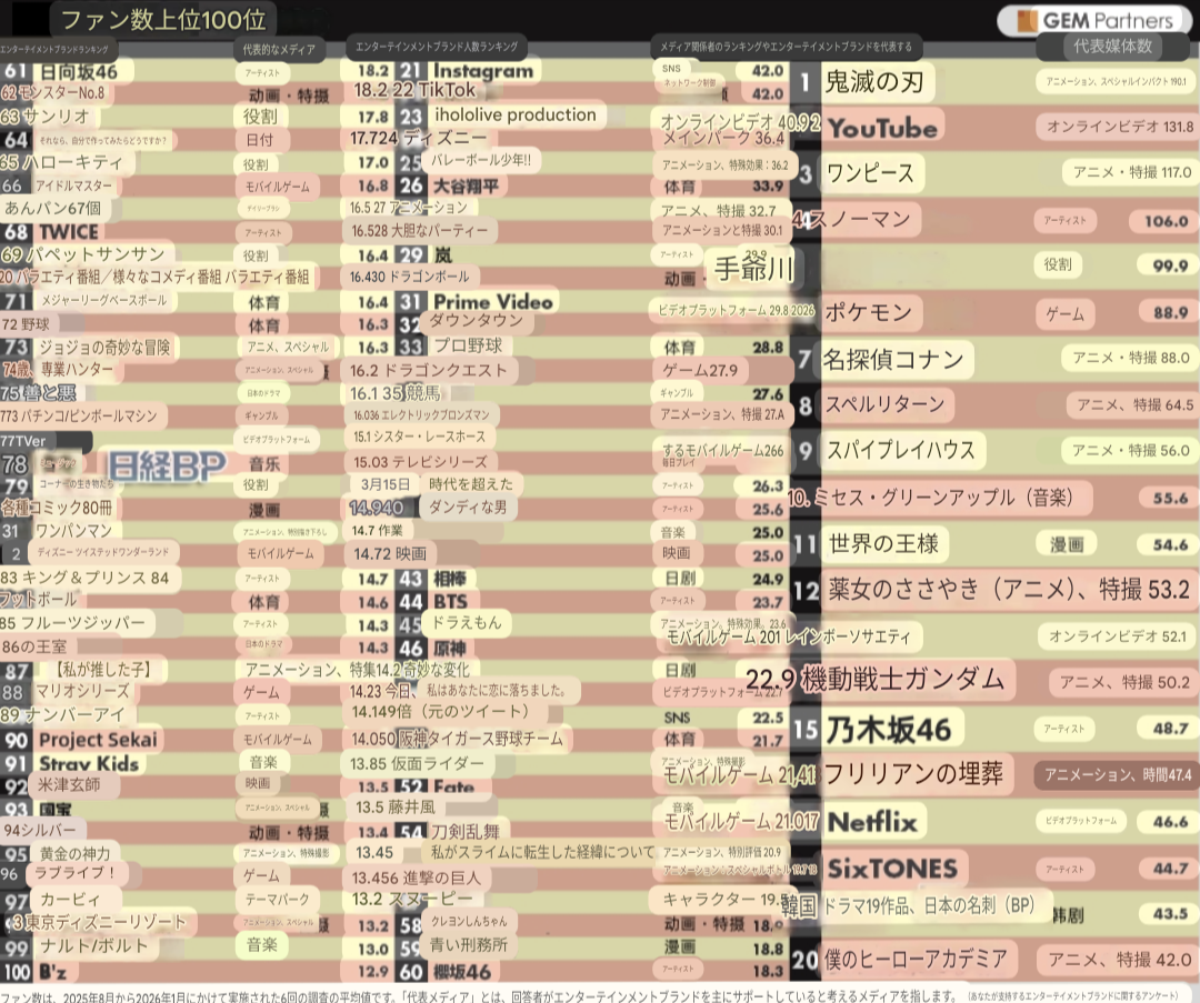- ガールズグループファン人数ランキングトップ100最新