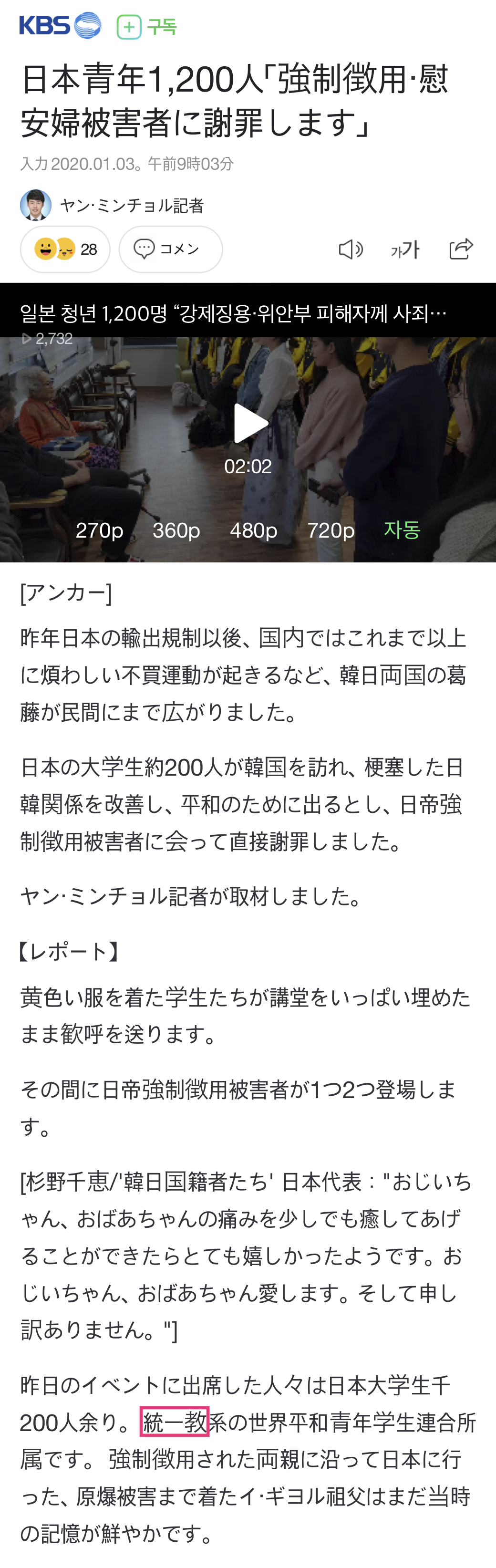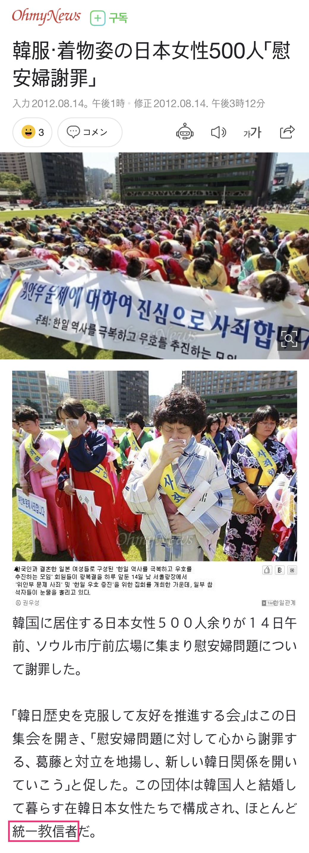 - 統一教会は韓国で日本人信者引き連れて慰安婦にお詫び行脚してた