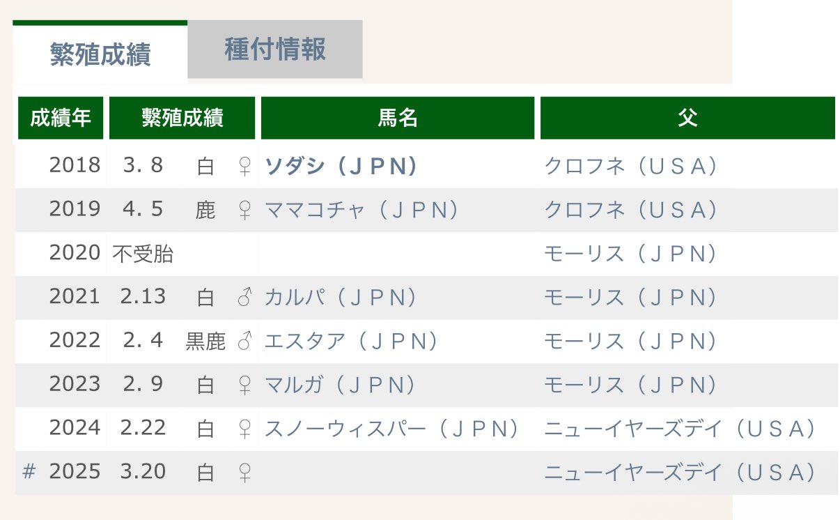 長女:ソダシ (牝7 父クロフネ)