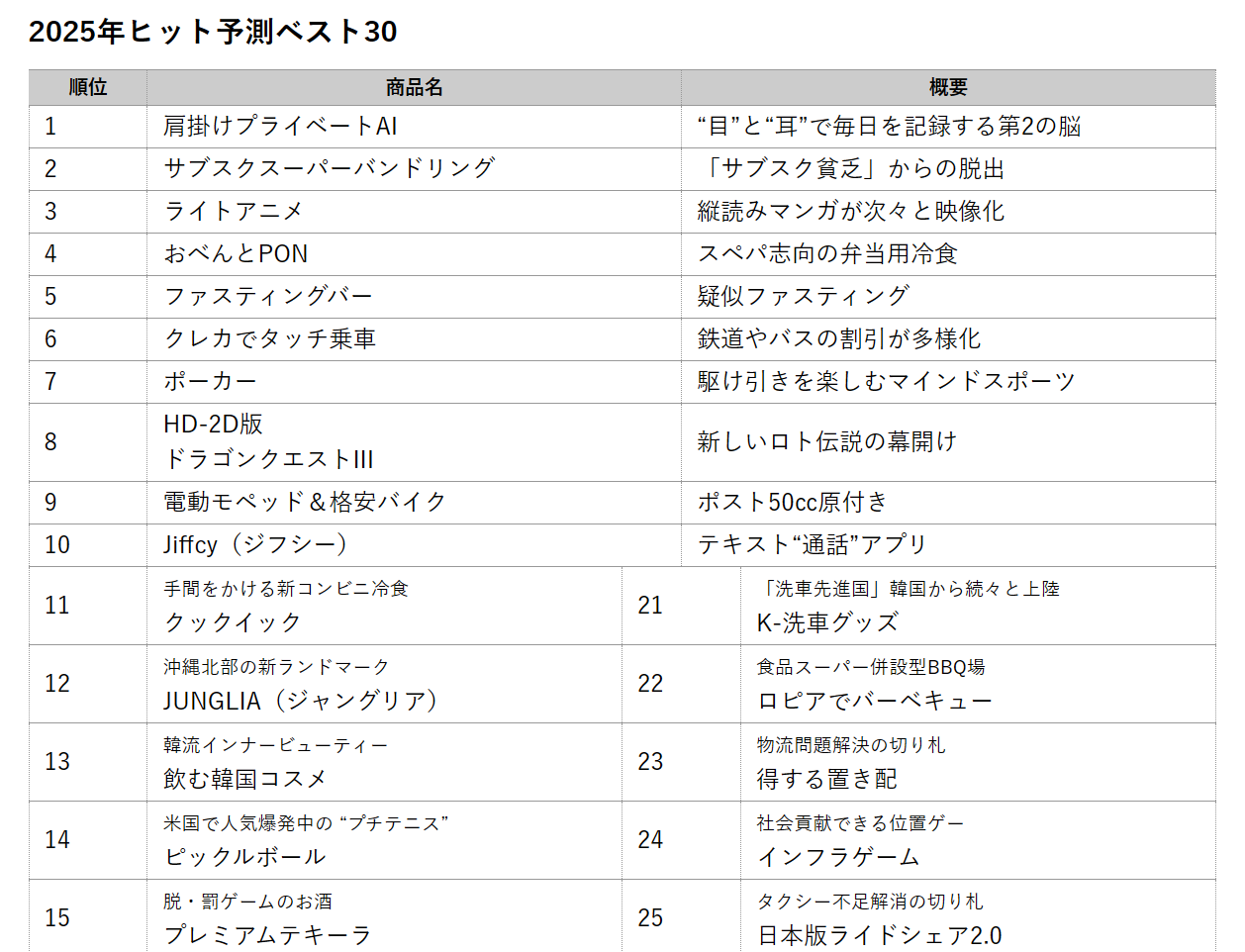 - 去年のヒット予測