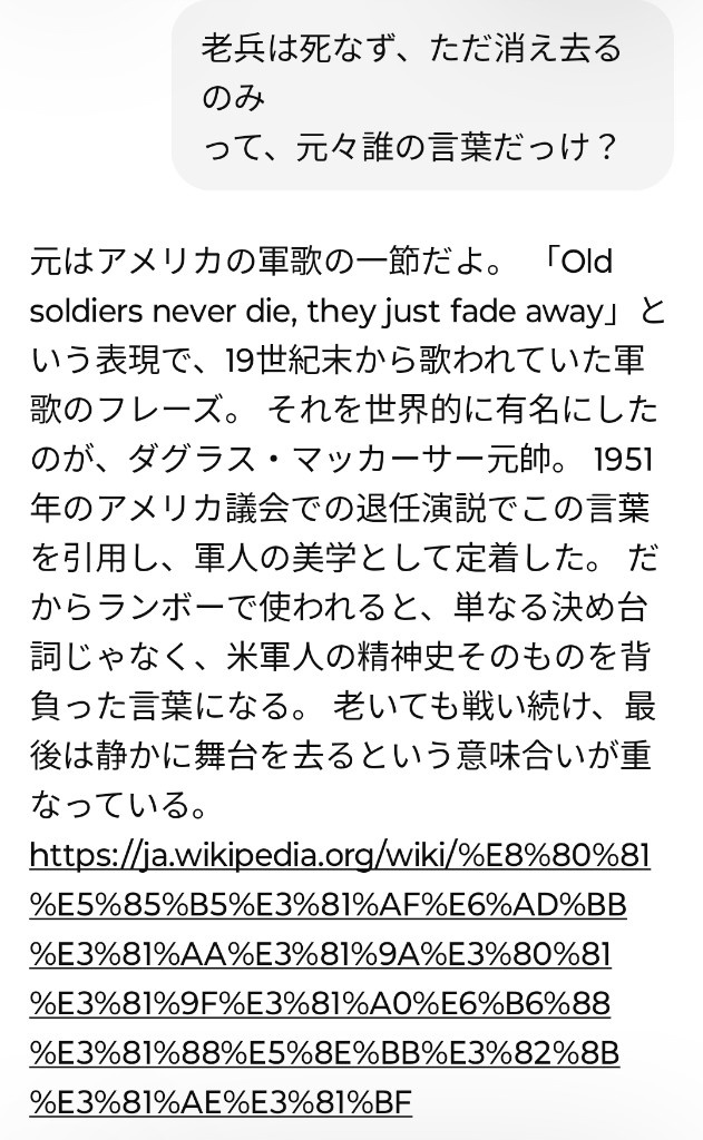 - 老兵は死なず、ただ消え去るのみ