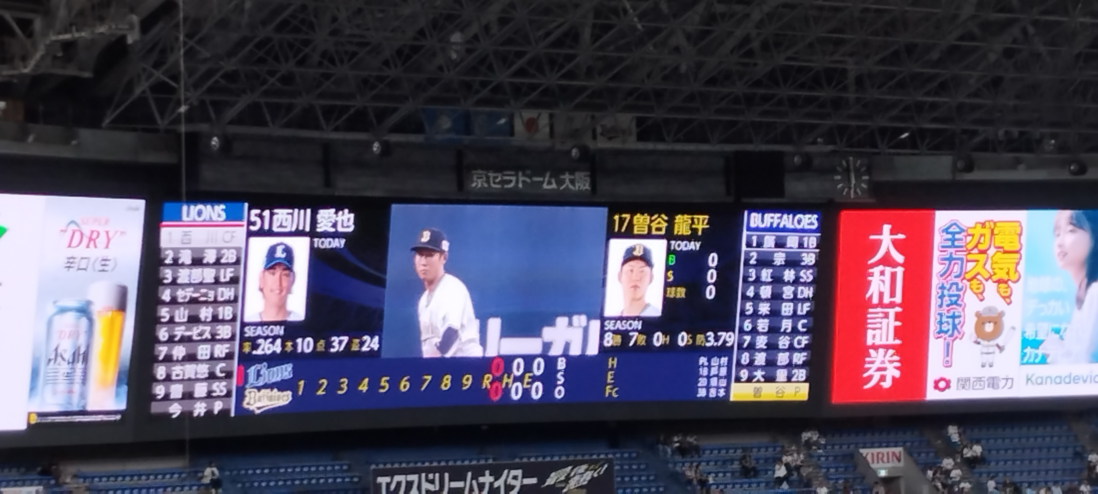 レギュラーシーズン最終戦は奈良県斑鳩町出身の曽谷くん先発の京セラドーム大阪始まった(´・ω・`) -