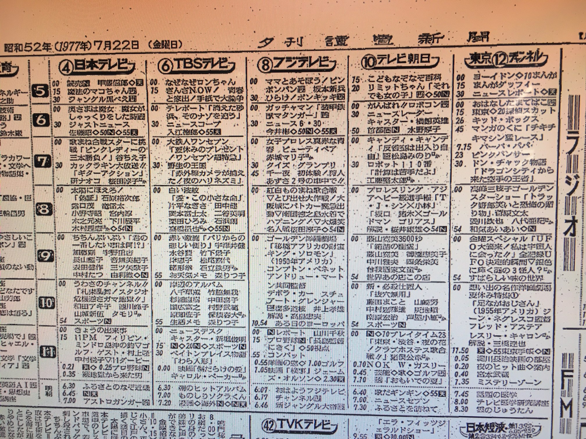 当日のテレビ欄(読売新聞夕刊)
