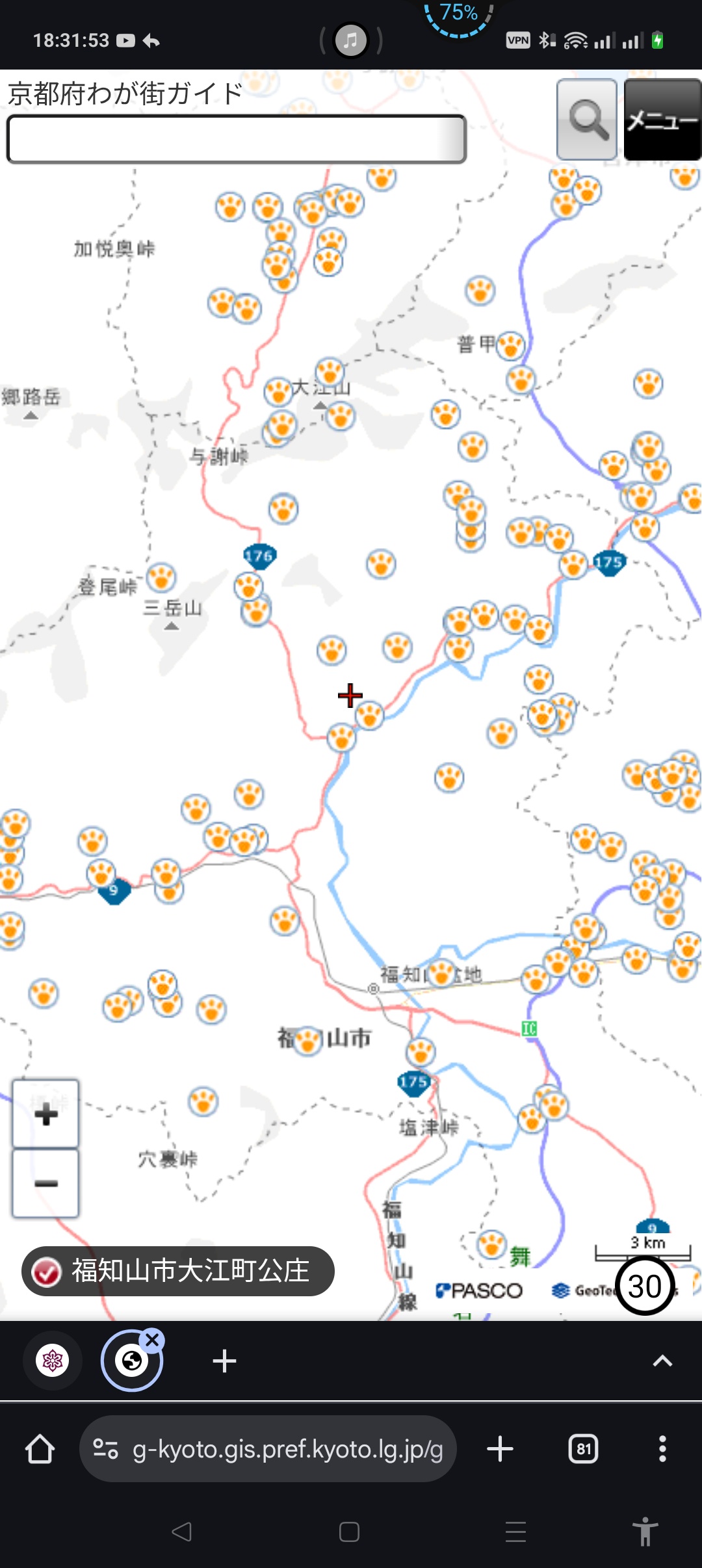 地図では切れてるが旧三和町はあまり出てへん