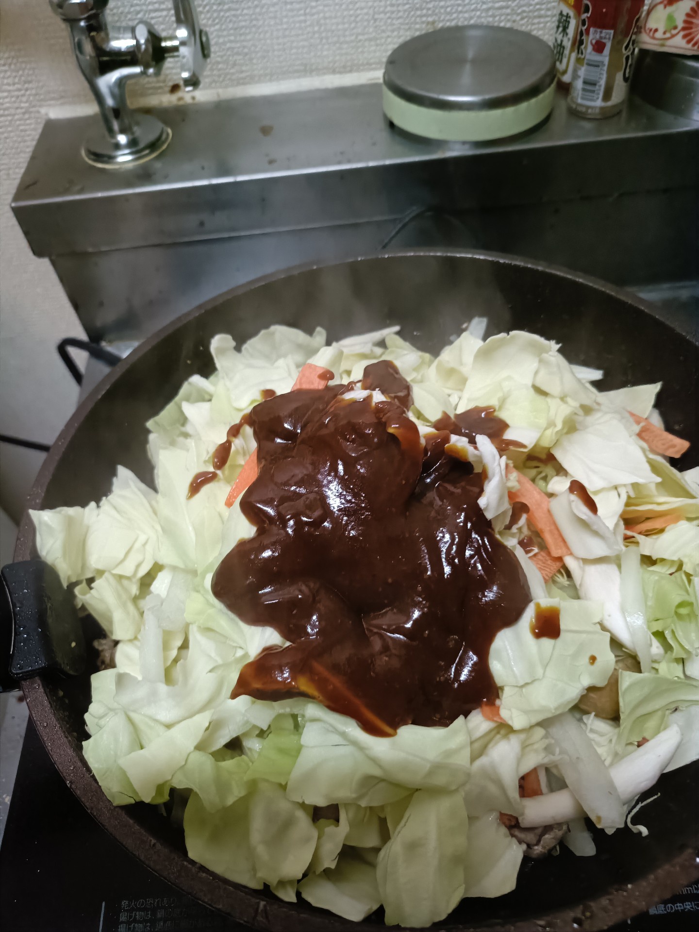 そして味噌っぽいやつ入れます( ̄・ω・ ̄)