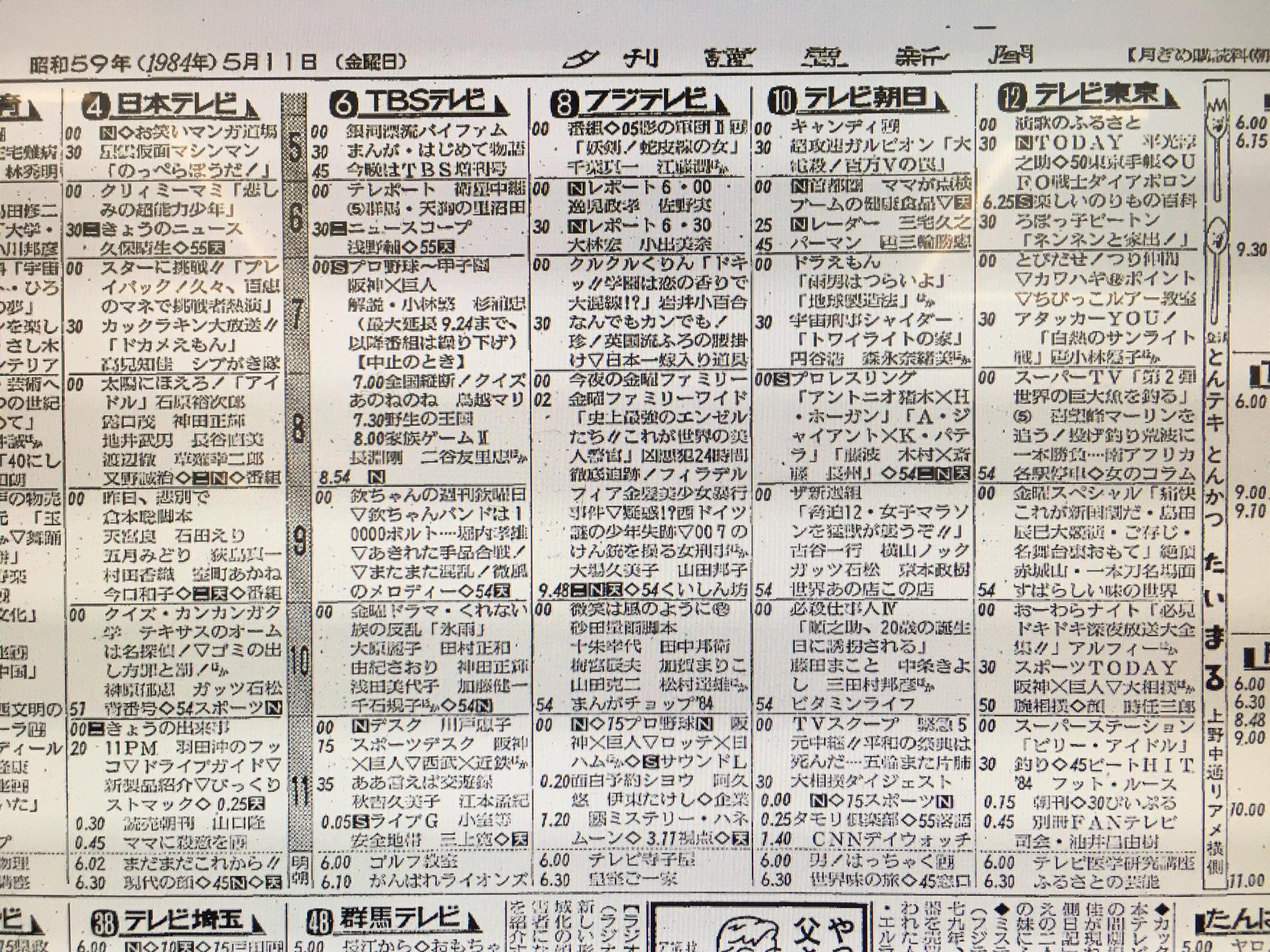 当日のテレビ欄(読売新聞夕刊)