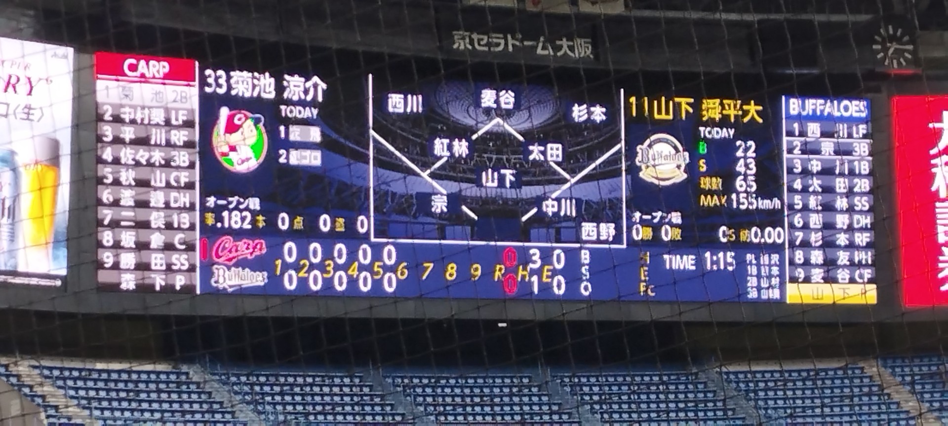 京セラドーム大阪は五回終わって0-0の同点。