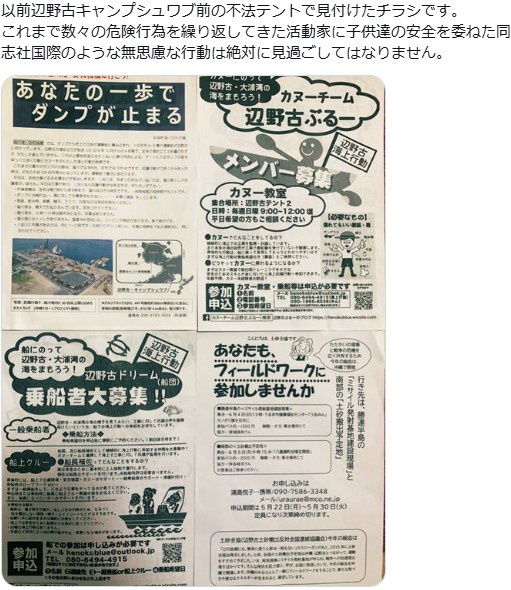 以前辺野古キャンプシュワブ前の不法テントで見付けたチラシです。