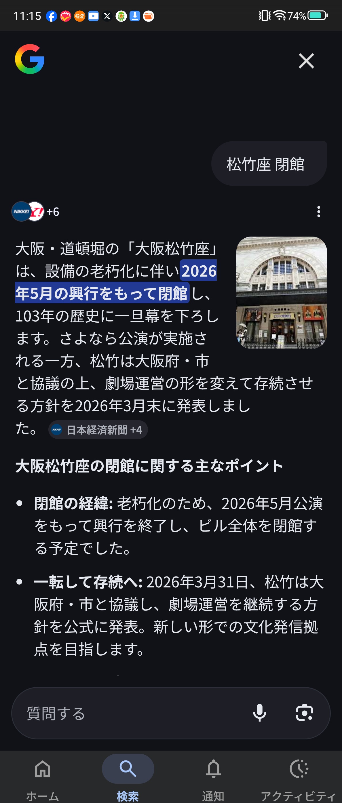 わしは建物潰すけど松竹座って名前は残すか府市が持って劇場ではなく何らかの別の施設にって意味やと思ってるけど