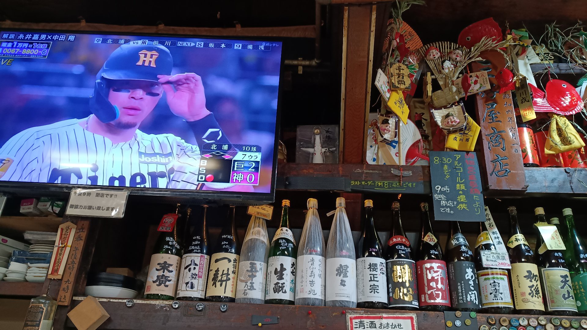 - 今日は角打ちで野球見ながら飲んでます