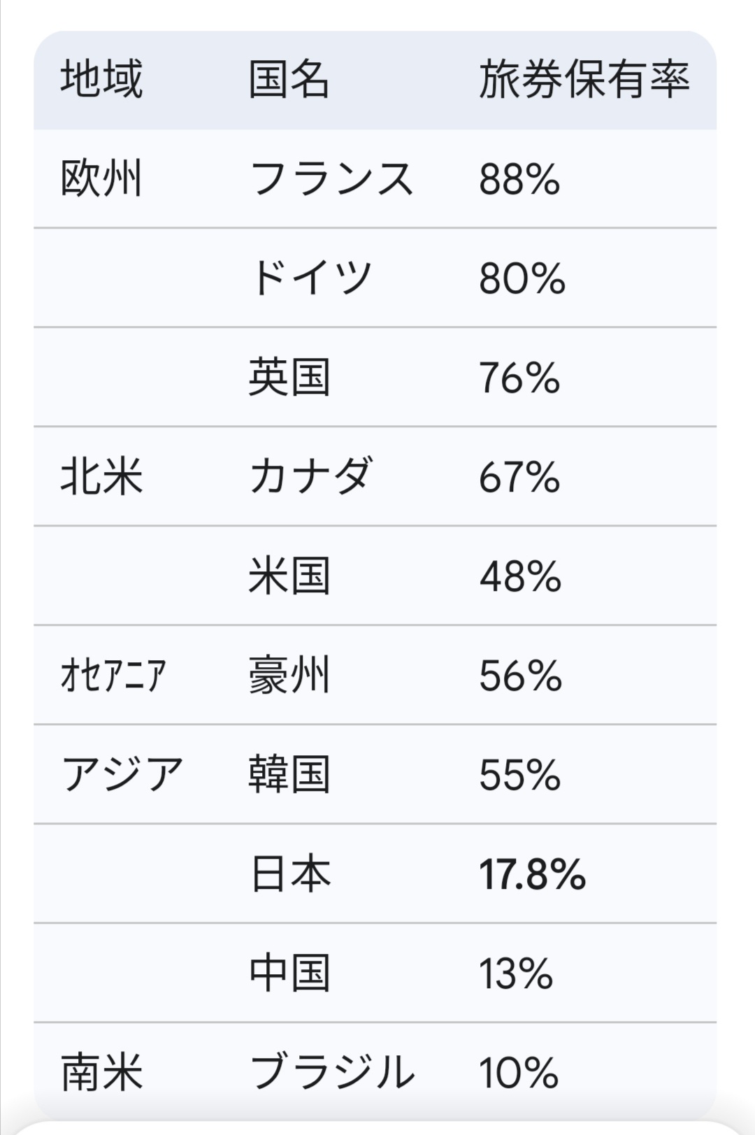 世界のパスポート保有率