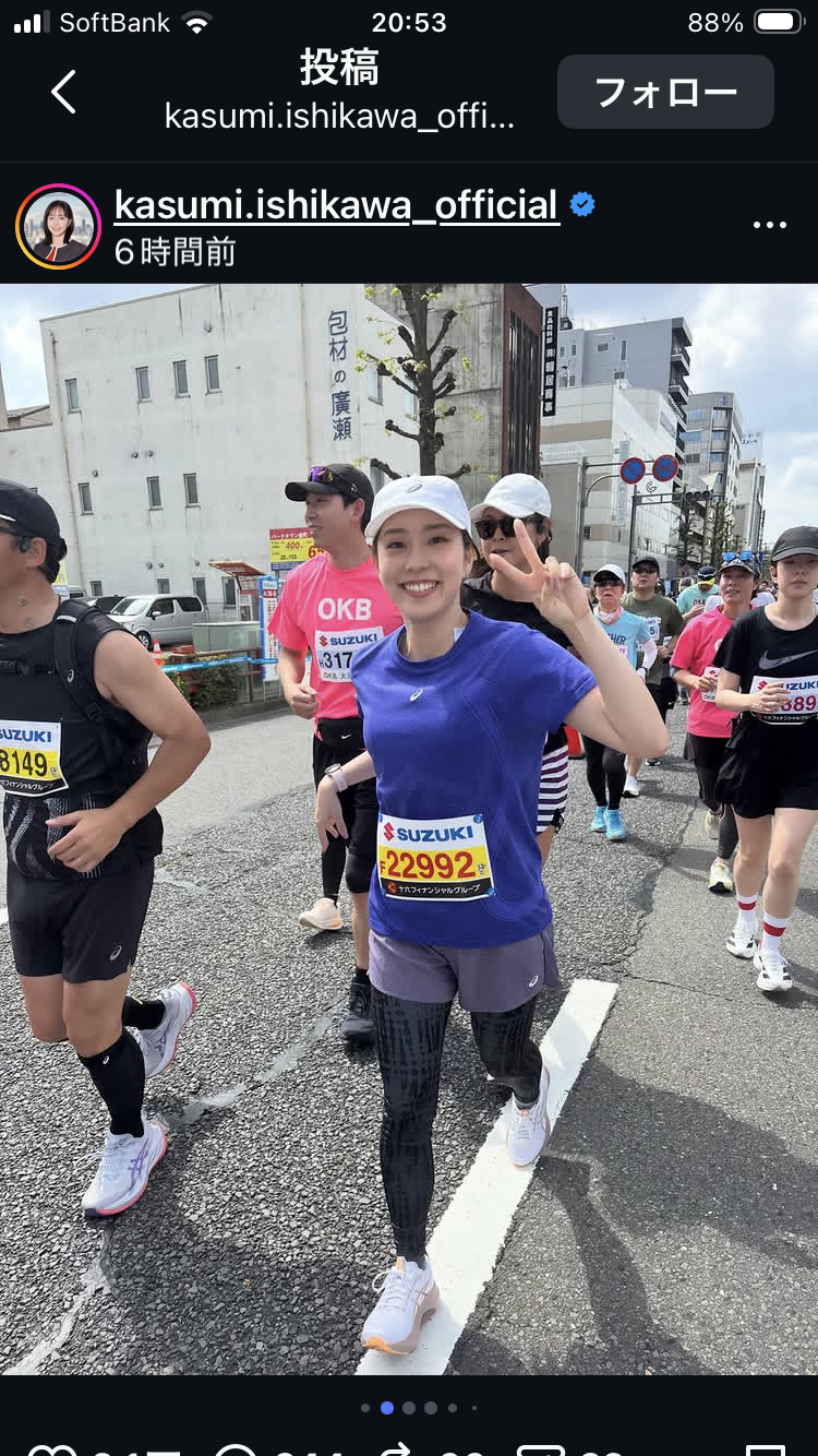 - 石川佳純ちゃんが高橋尚子杯ハーフマラソンで完走したんやて