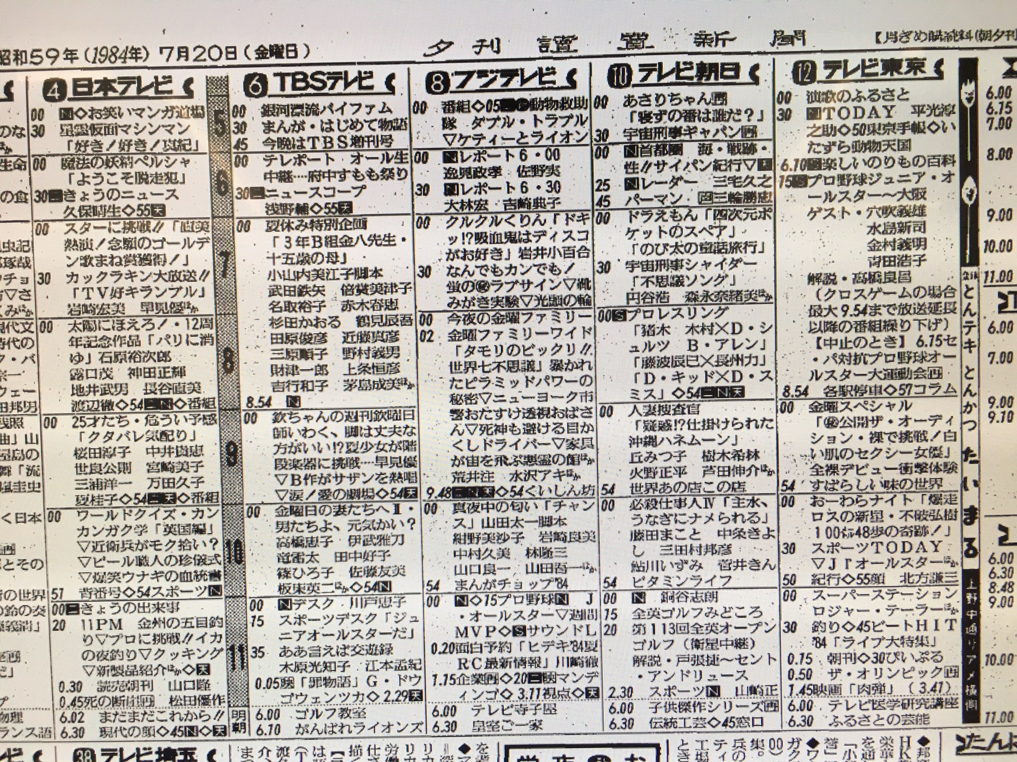 当日のテレビ欄(読売新聞夕刊)
