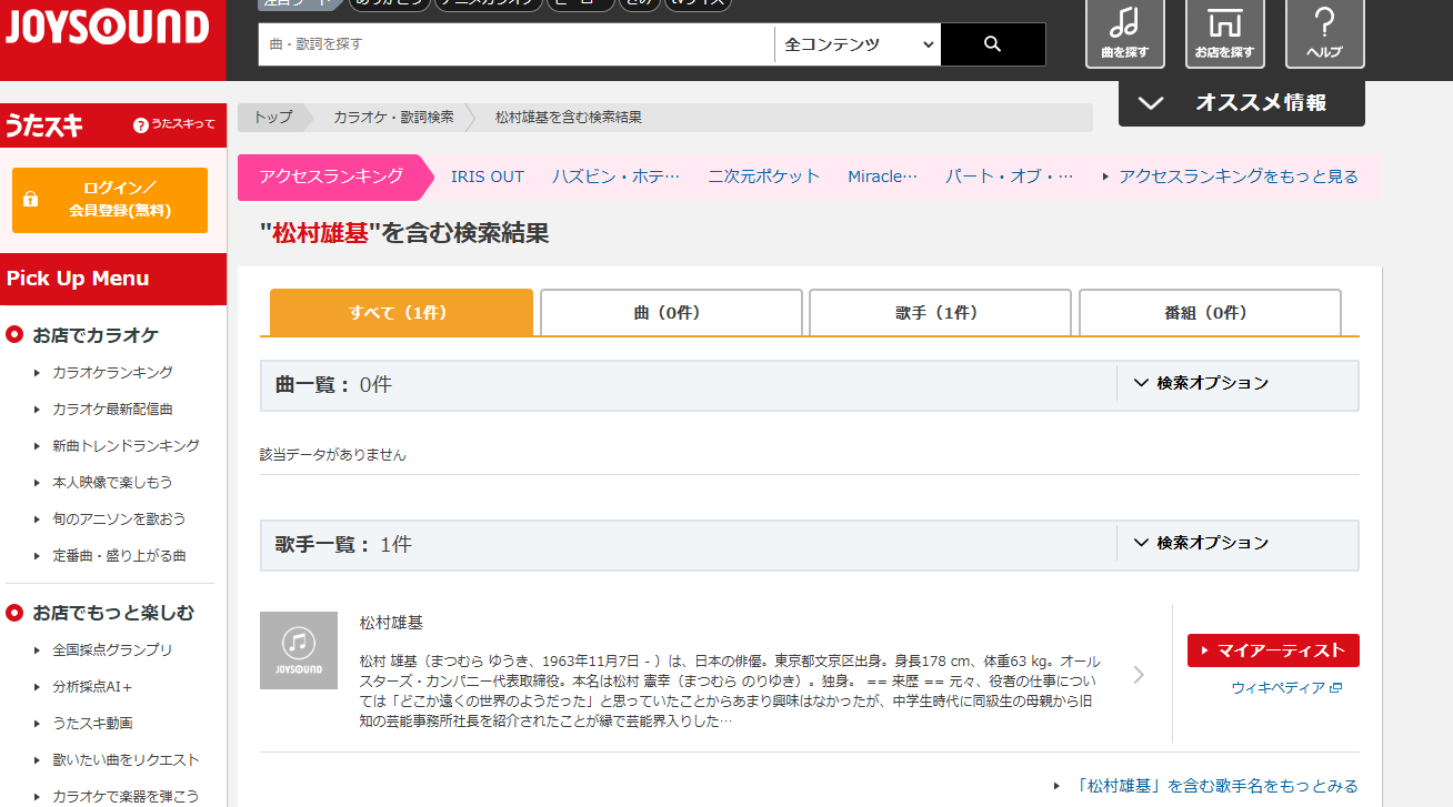 - アゲインをカラオケで歌おうと思ったら松村雄基の曲一曲も無いや