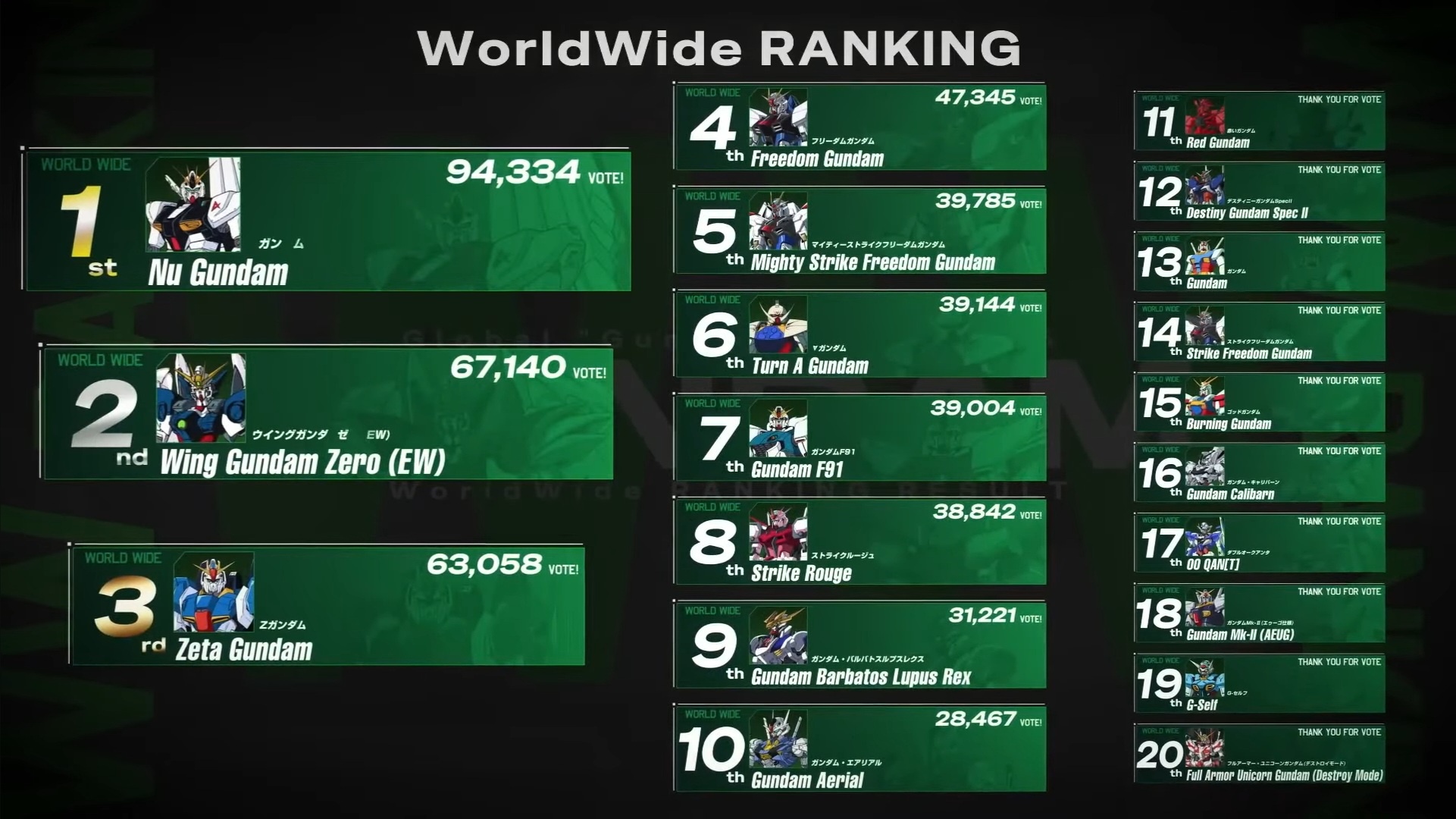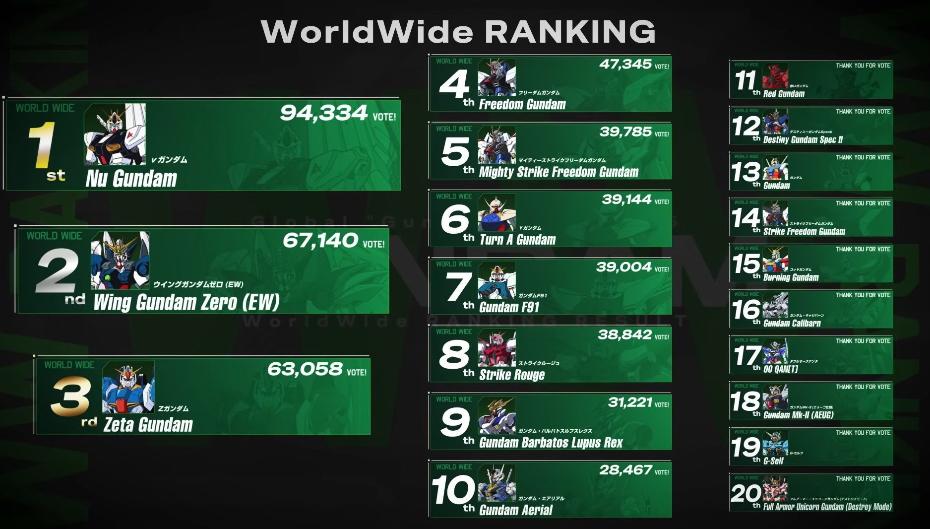 - 世界ガンダム人気ランキングが発表されたようです