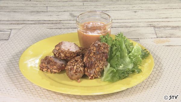 - あしたは雅也の豚のナッツ揚げオーロラソースだよ