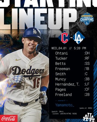 山本先発・大谷出場予定 MLB2026「ガーディアンズ」対「ドジャース」★1 (1002)