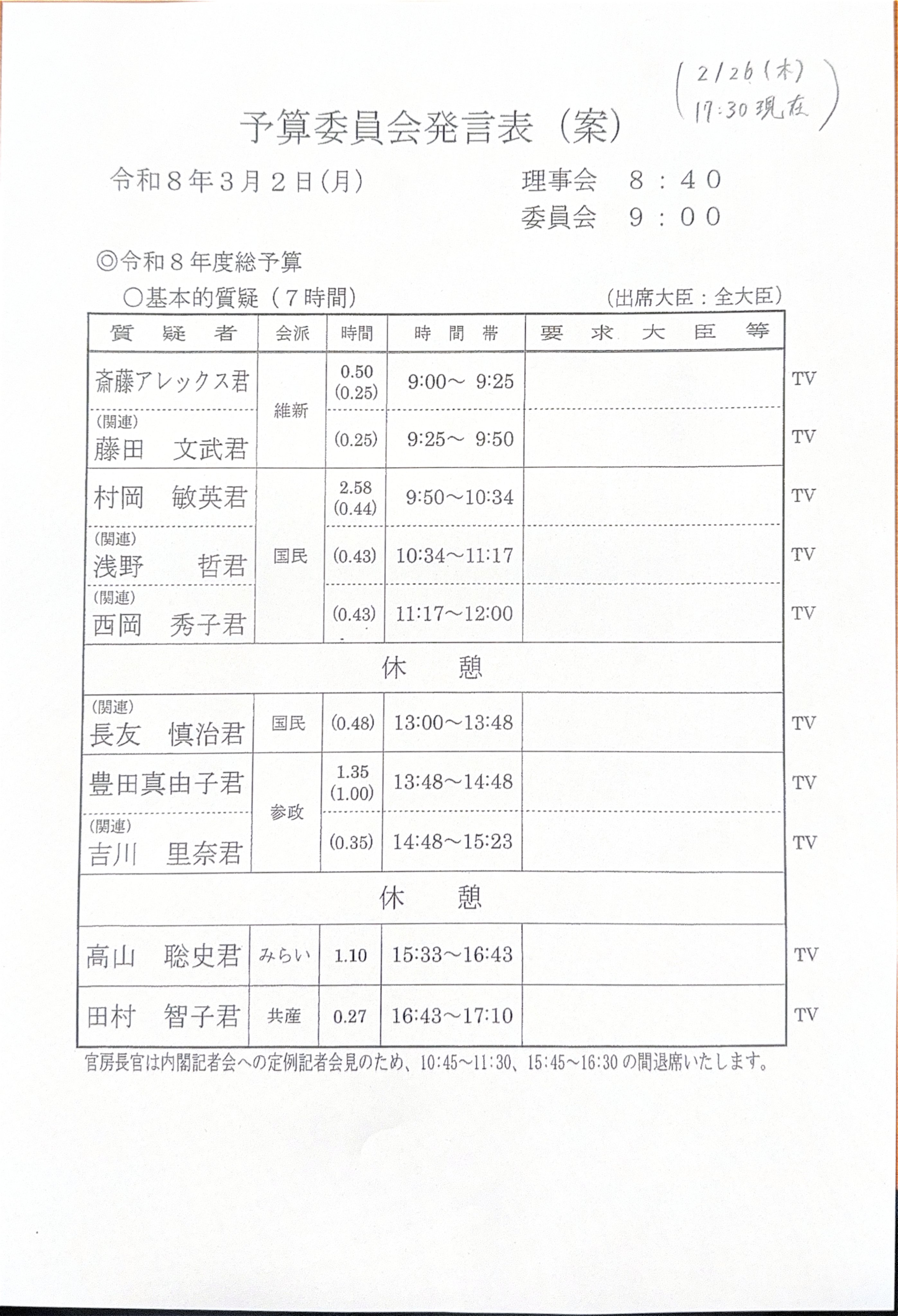 NHK総合を常に実況し続けるスレ 233831 国会中継 (1002)