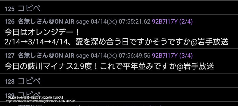 ラジオ実況 : 2026/04/13(月) 07:00:23