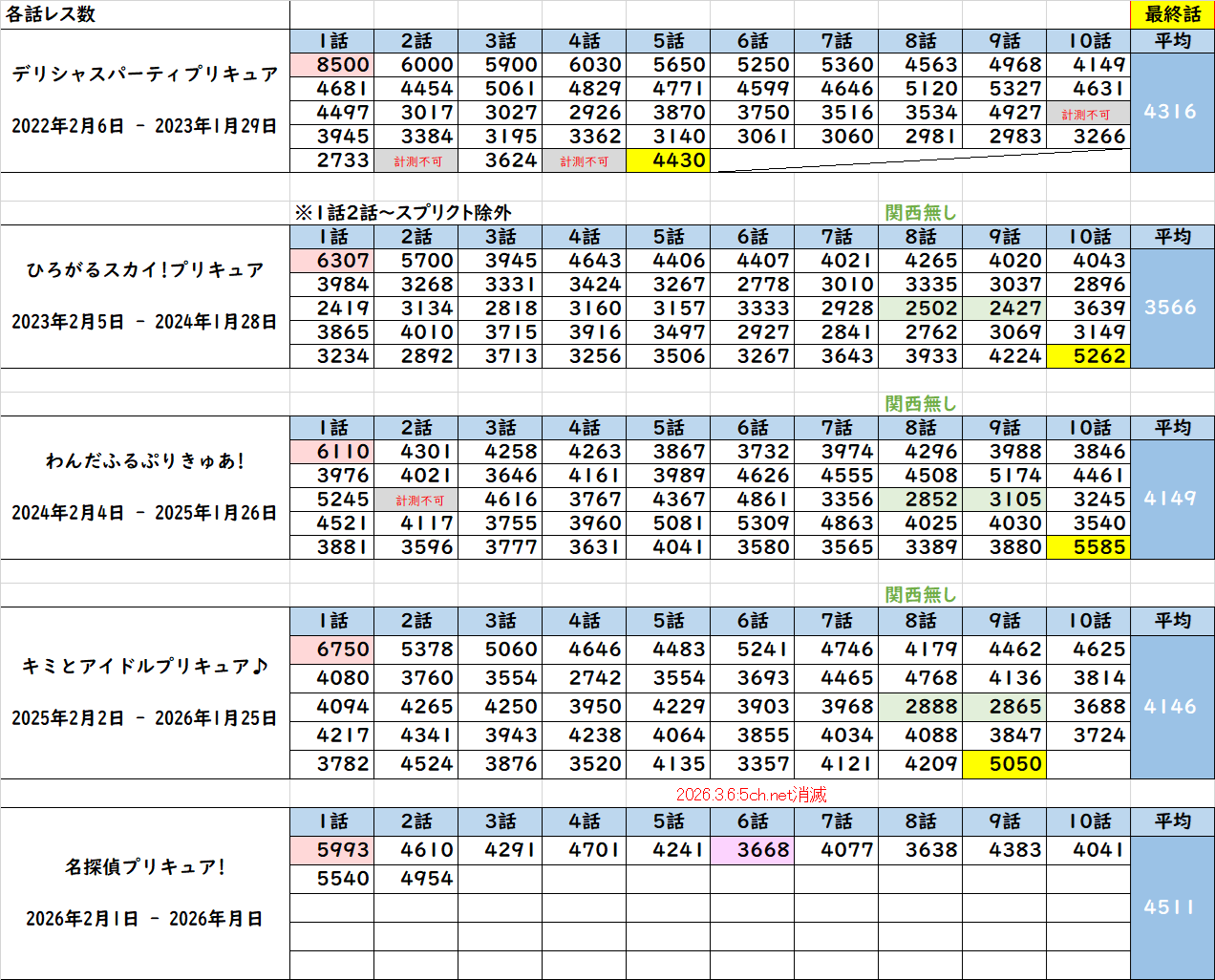 | 番号 | URL | レス番 | キャッシュ |