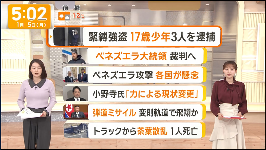 https://sora.5ch.net/test/read.cgi/liveanb/1767515512/ - 2 : 名無しステーション : 2026/01/05(月) 06:18:21.24 ID:Y1UvV1+qr