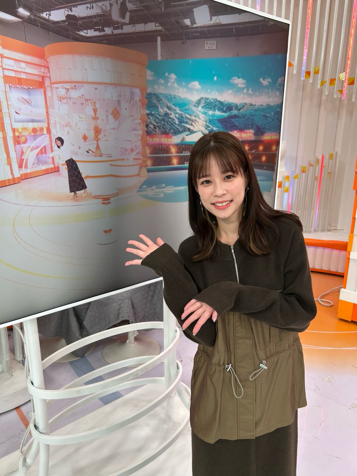 同じタイミングでインスタの写真を撮ろうとしていた高崎アナをモニターに発見!