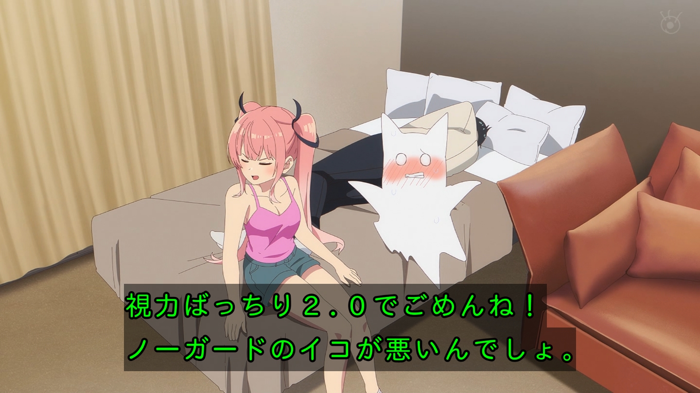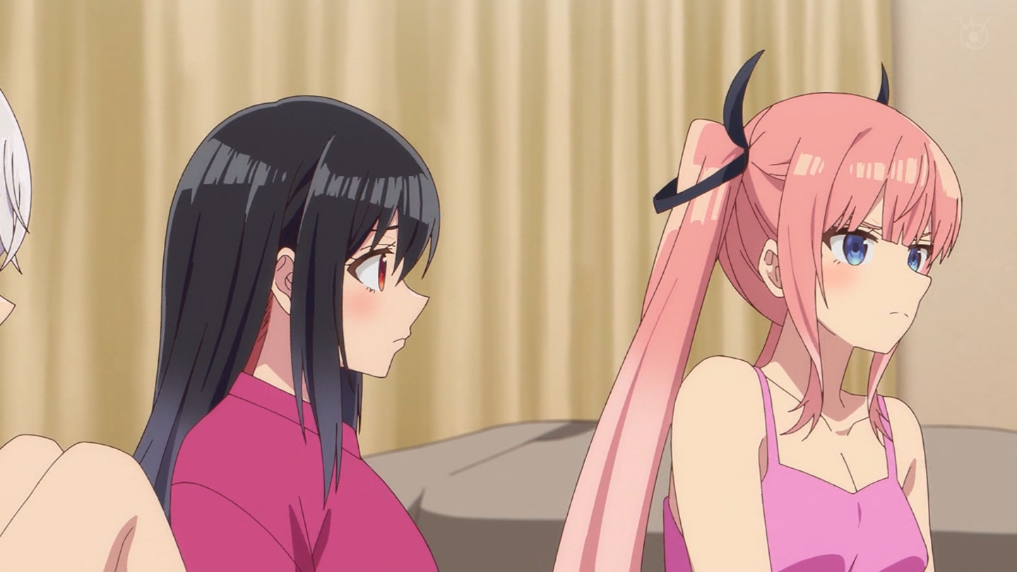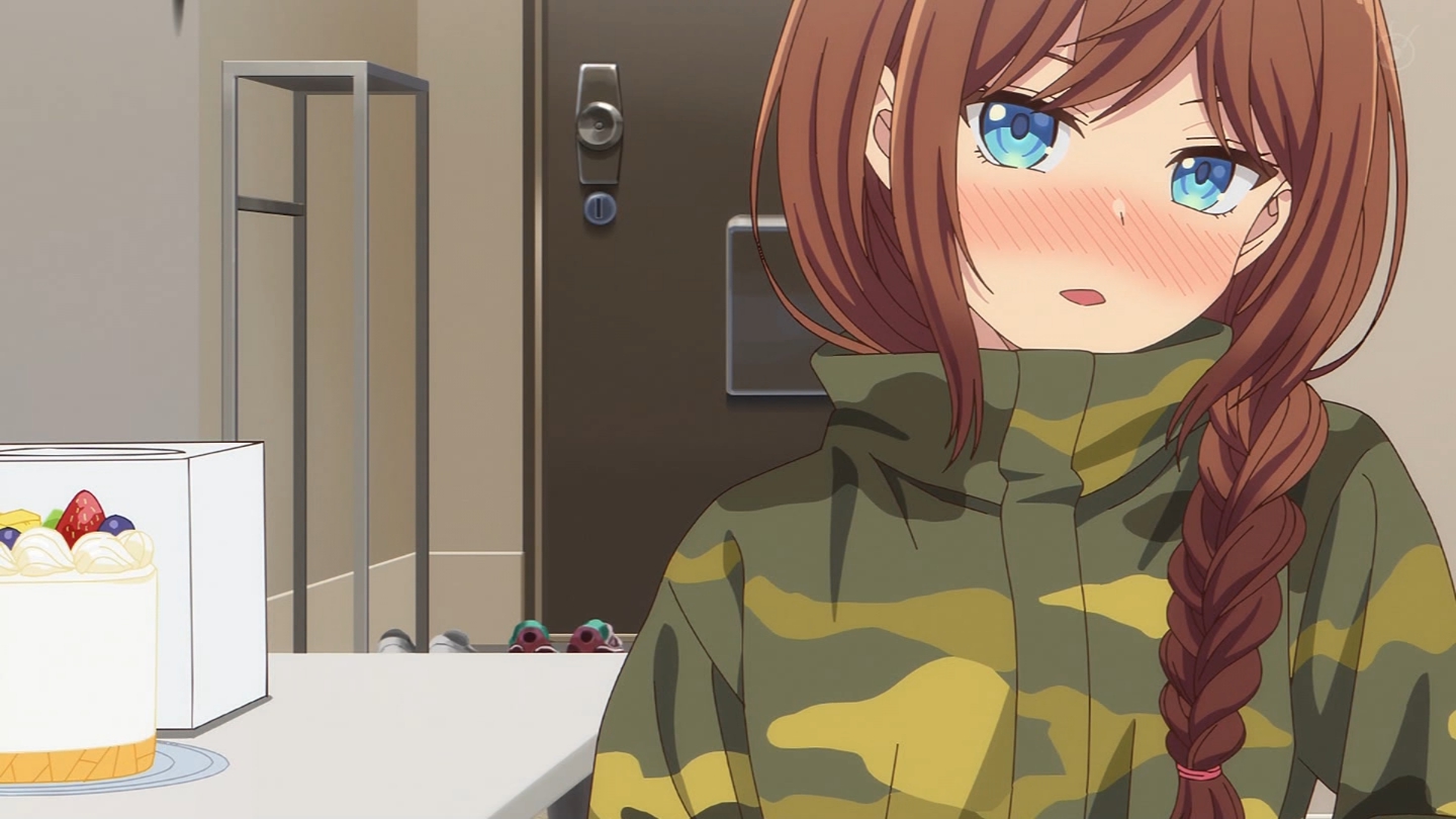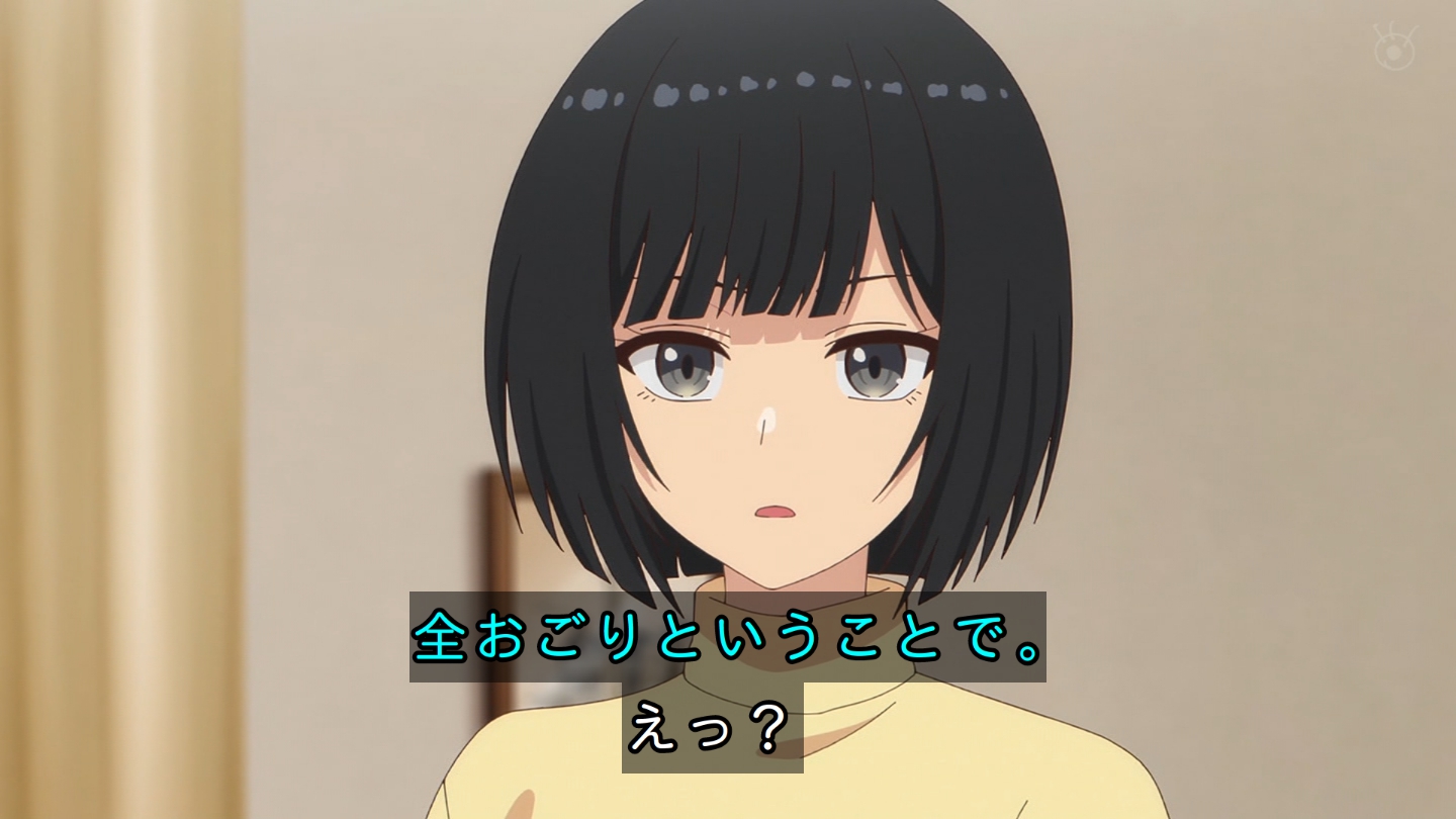 6話 無事に告白代行企画を成功させた放送部は、その晩、檸檬の自宅に集まっていた。『体育祭大成功★ハイパー打ち上げ』と称し、六花の音頭で乾杯する放送部員たち。各々めかしこみ気合いを入れてきたのだが、有栖は体育祭の疲労から、すぐに寝落ちしてしまう。一同は眠ってしまった有栖を放っておき、それぞれおすすめの食べ物を買ってくることになる。最初に部屋に戻ってきた霧乃イコは、