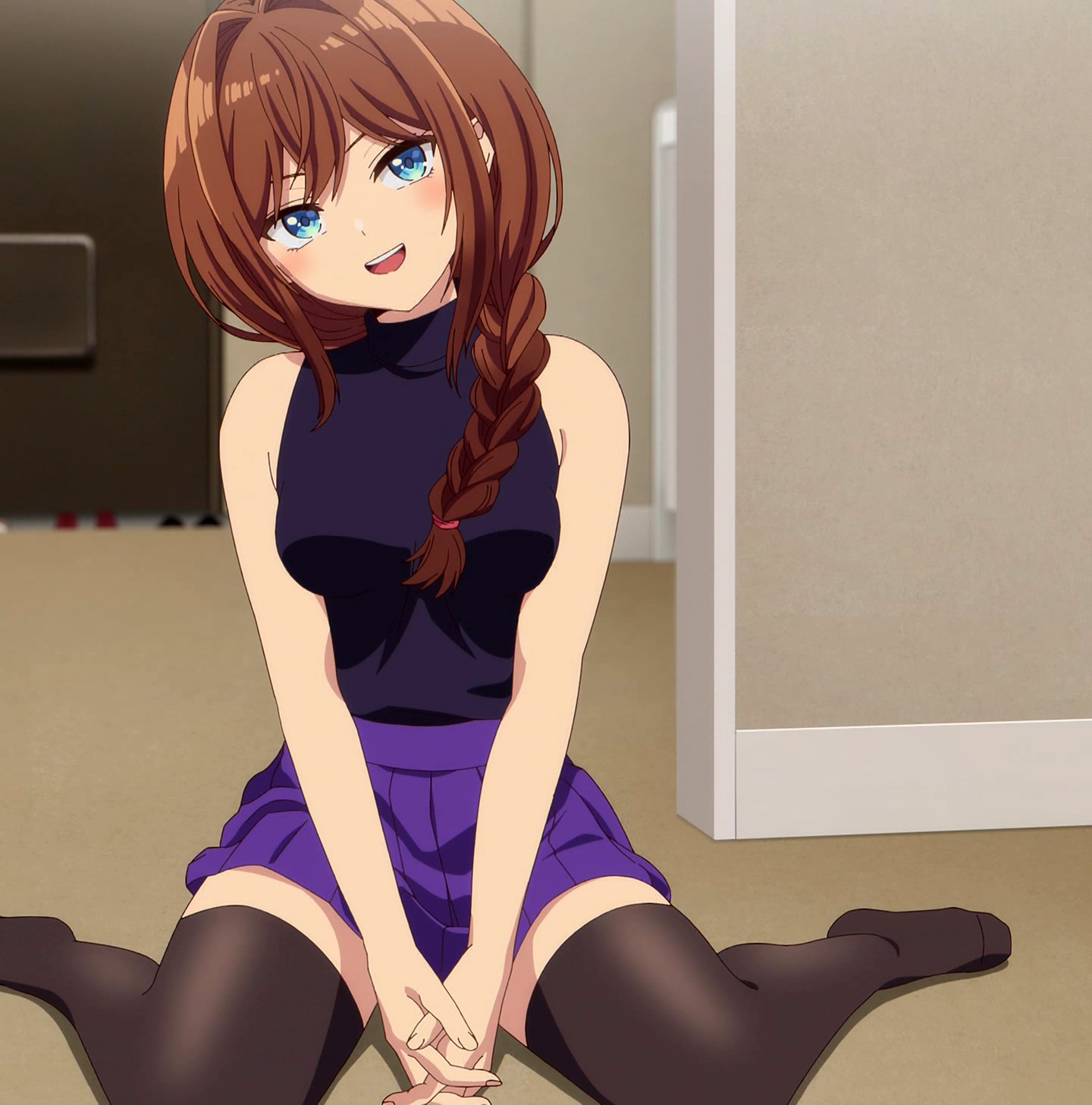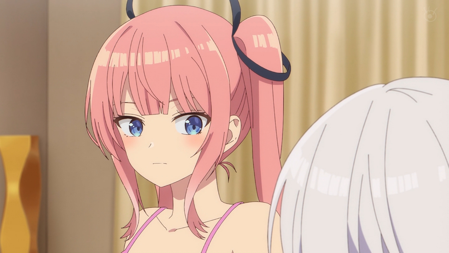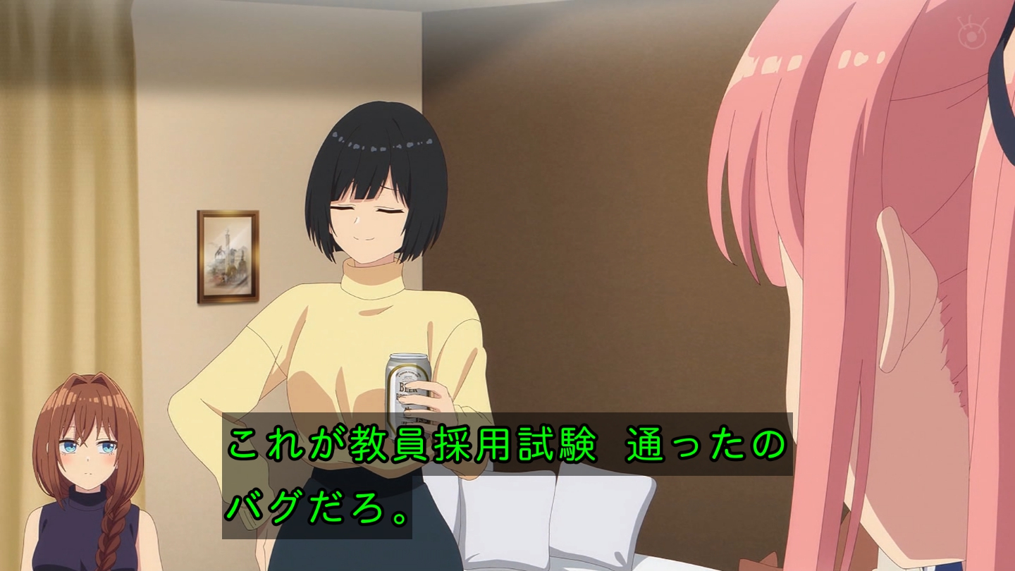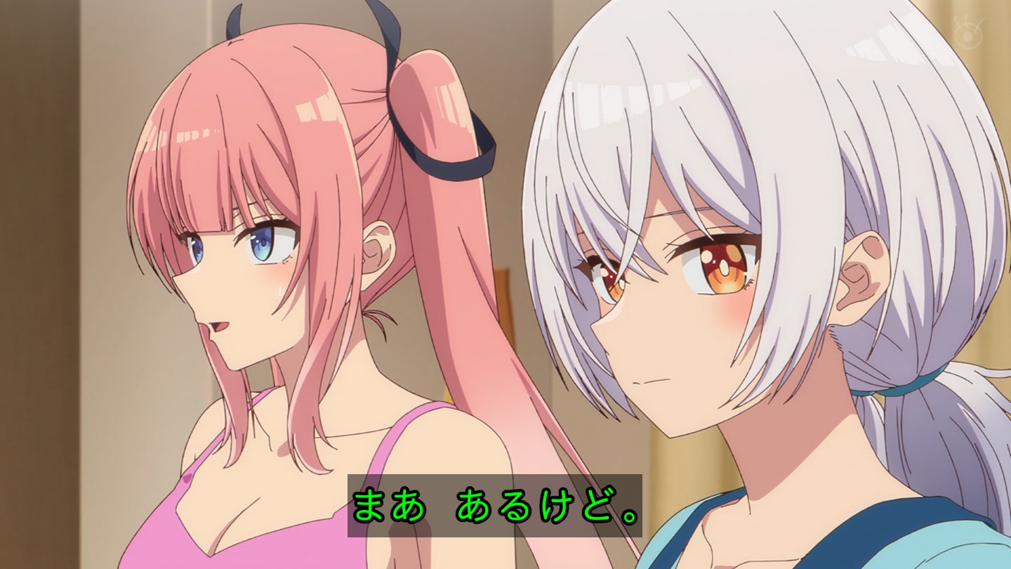 6話 無事に告白代行企画を成功させた放送部は、その晩、檸檬の自宅に集まっていた。『体育祭大成功★ハイパー打ち上げ』と称し、六花の音頭で乾杯する放送部員たち。各々めかしこみ気合いを入れてきたのだが、有栖は体育祭の疲労から、すぐに寝落ちしてしまう。一同は眠ってしまった有栖を放っておき、それぞれおすすめの食べ物を買ってくることになる。最初に部屋に戻ってきた霧乃イコは、