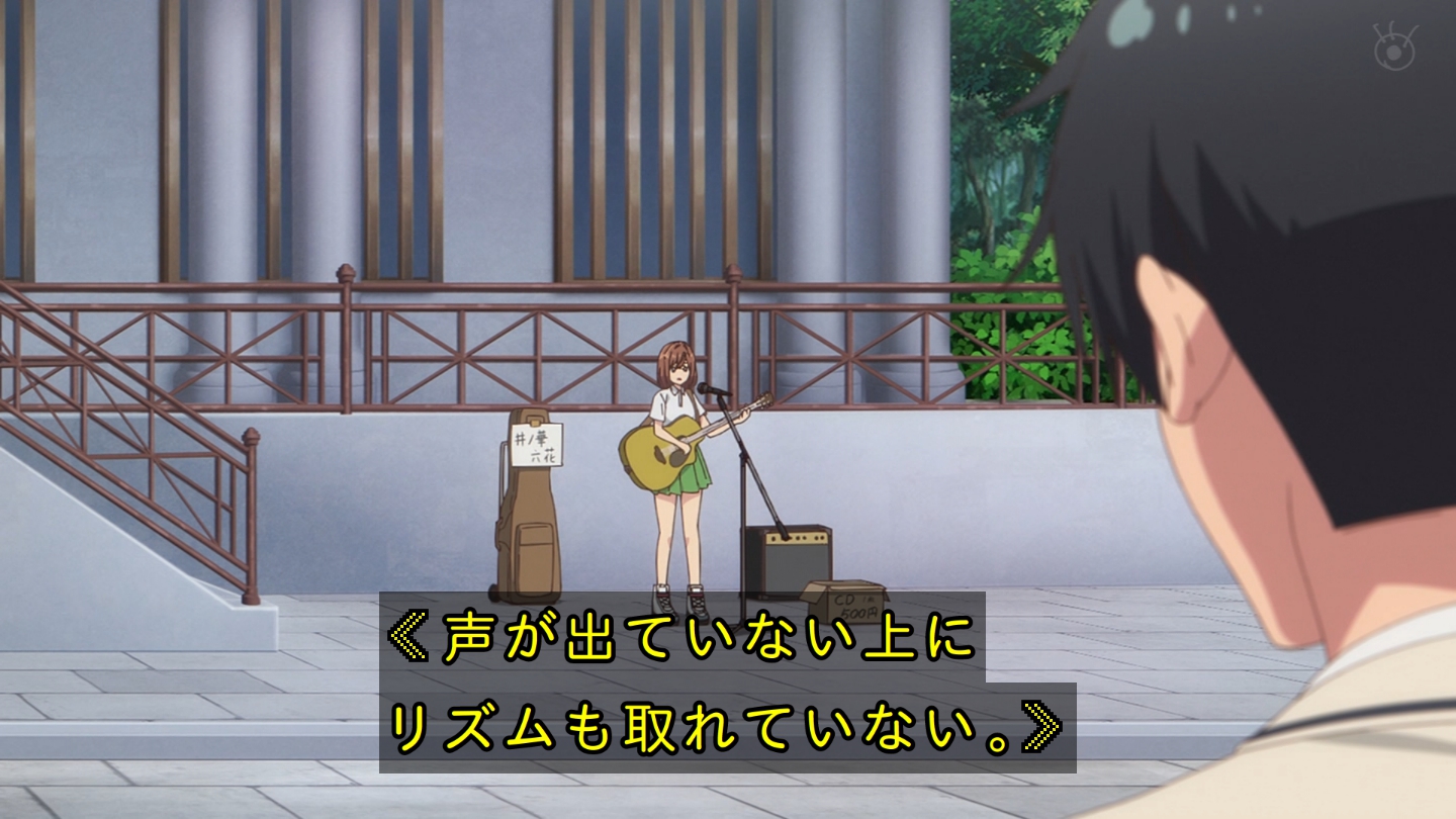 11話 有栖の計らいで開催された六花のオリジナル曲限定ライブ。見届けてくれた放送部たちのおかげで、六花は自分の曲を歌う楽しさを取り戻しつつあった。けれど路上ライブでの不安は未だ消えていない。新曲も書けておらず、どうしようかと悩んでいたある日のこと。六花は偶然、かつての相棒アイコの路上ライブに遭遇する。物陰に隠れながら、アイコのライブを見守っていると最後の曲にと、かつて六花と共作した曲を歌いだす。