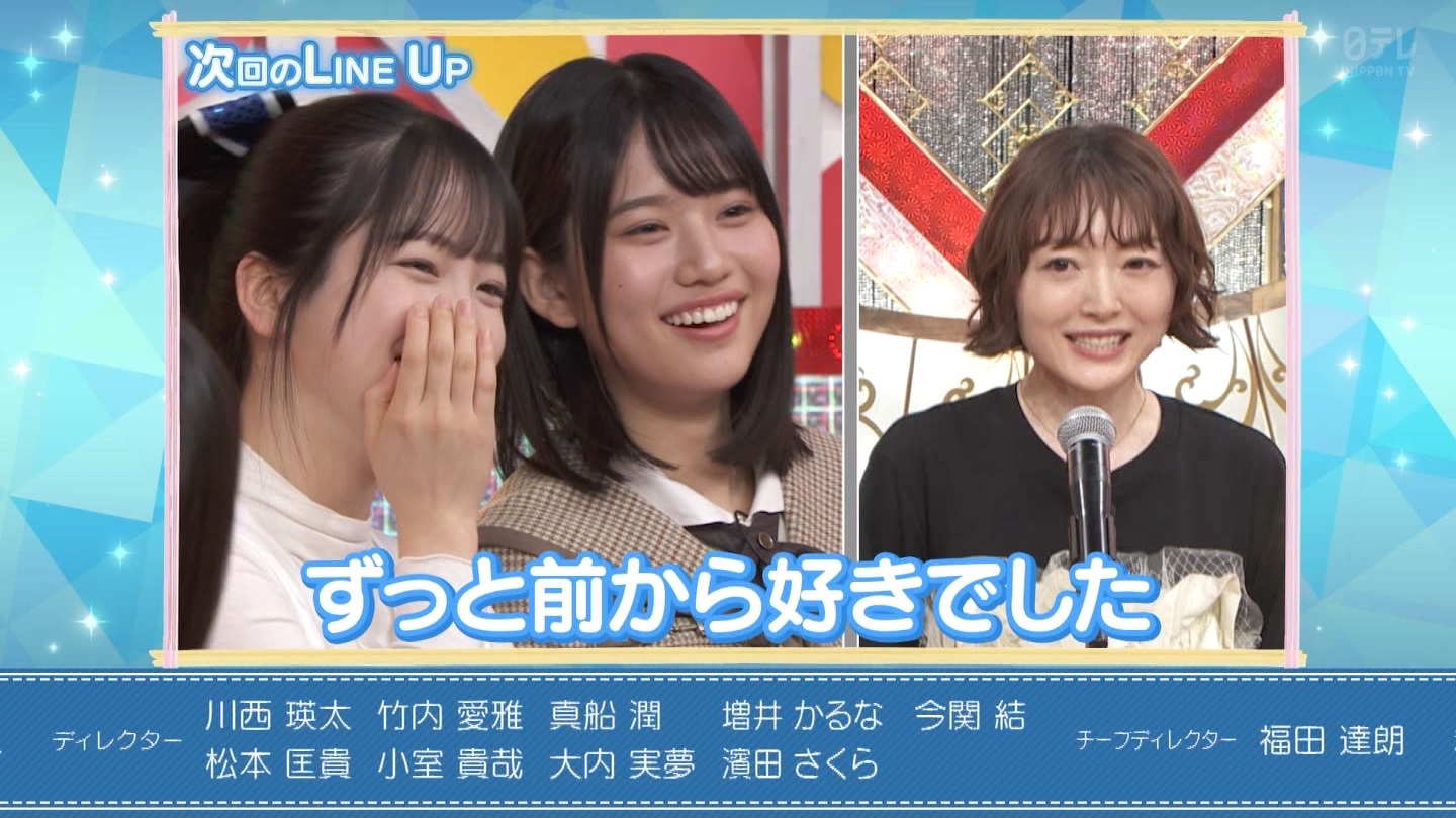 - 6期生1人1人のキャラ個性(魅力)が視聴者によく伝わる様に5期生の時の様な「歌+コント、バラエティー」を早めに開始するのも良いと思う。