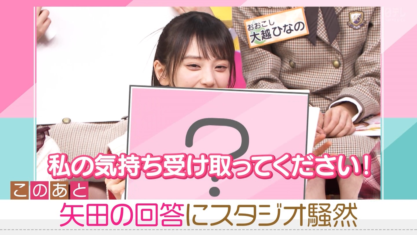 - 髪型では6期生は海邉ちゃん、矢田ちゃん、森平ちゃん、愛宕ちゃん、鈴木ちゃん、川端ちゃんなどポニーテールが似合うメンバーが多いからこの番組に出演する時もポニーテールで出演する回を多くしてほしい。