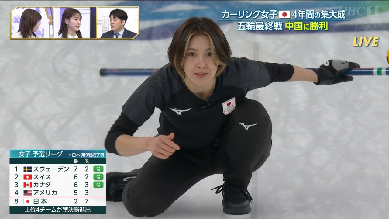 カーリング女子予選リーグ最終戦 日本vs中国