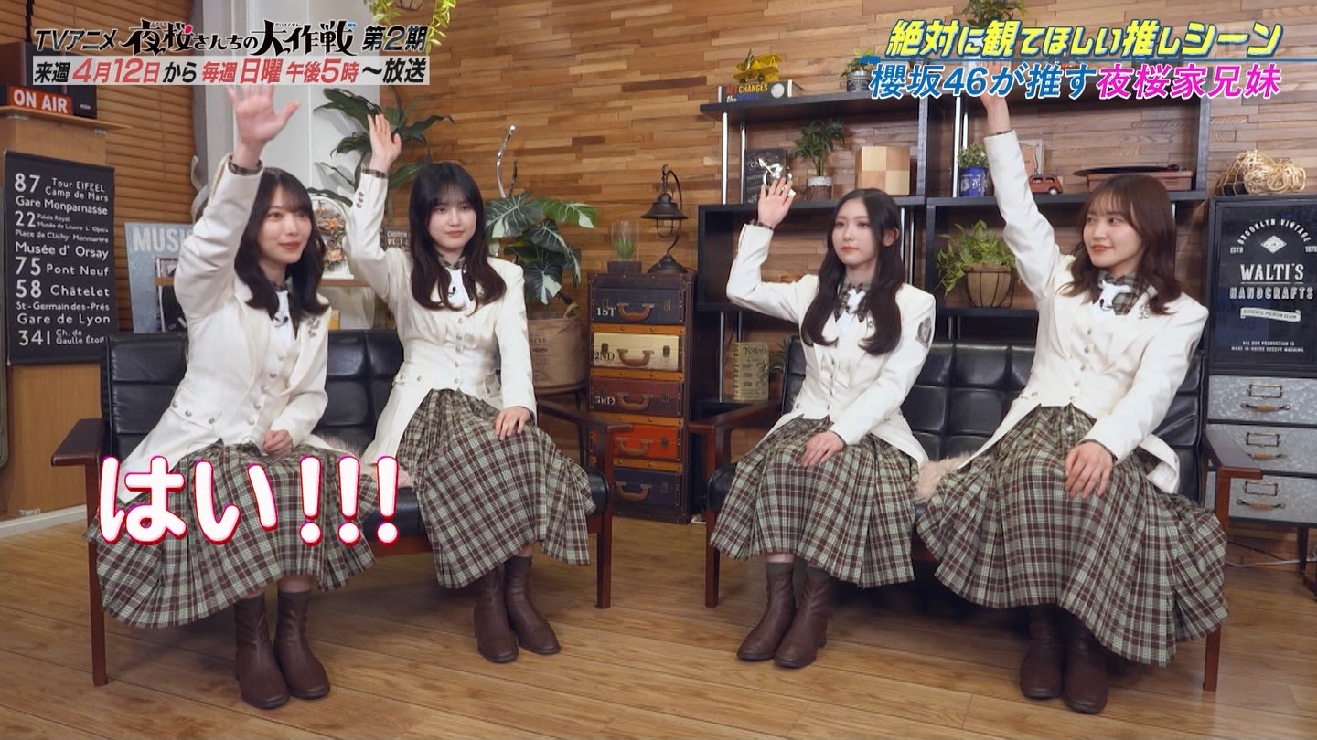 来週、日5『夜桜さんちの大作戦』第2期スタート★キャストが作品の魅力を紹介!第2期のOPテーマを務める櫻坂46メンバーの4名が視聴者と一緒に第1期を振り返ります