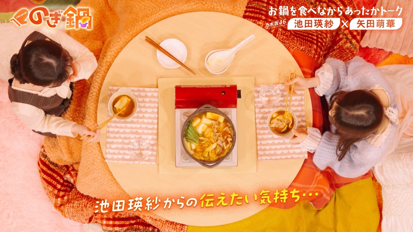 乃木坂46のメンバーが“二人きり”で、お鍋を囲みながら温かいトークをする番組です。