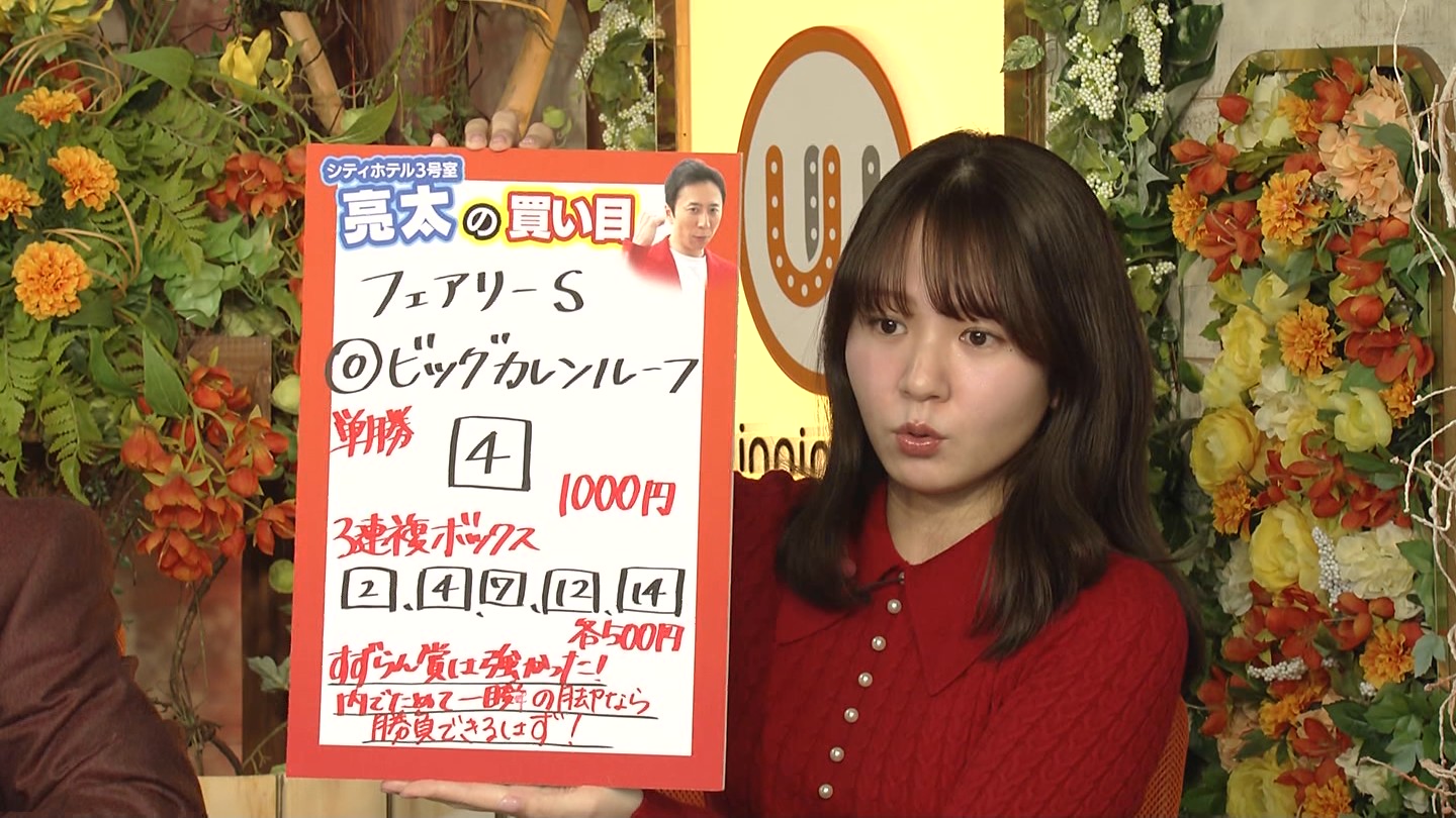 - 皆藤愛子,森千晴,舩山陽司,木和田篤(ラジオNIKKEI) 【スタジオ解説】板津雄志(サンケイスポーツ) 【中山パドック解説】京増真臣(研究ニュース) 【京都パドック解説】青木行雄(競馬ブック))